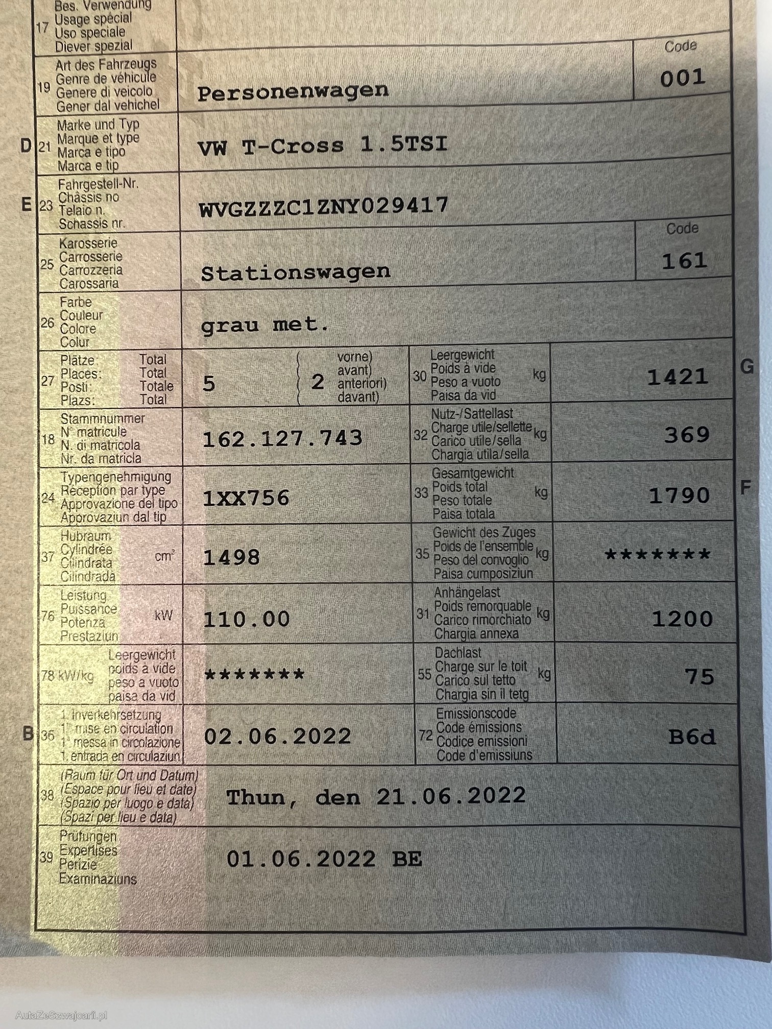 | VIN | WVGXXX |