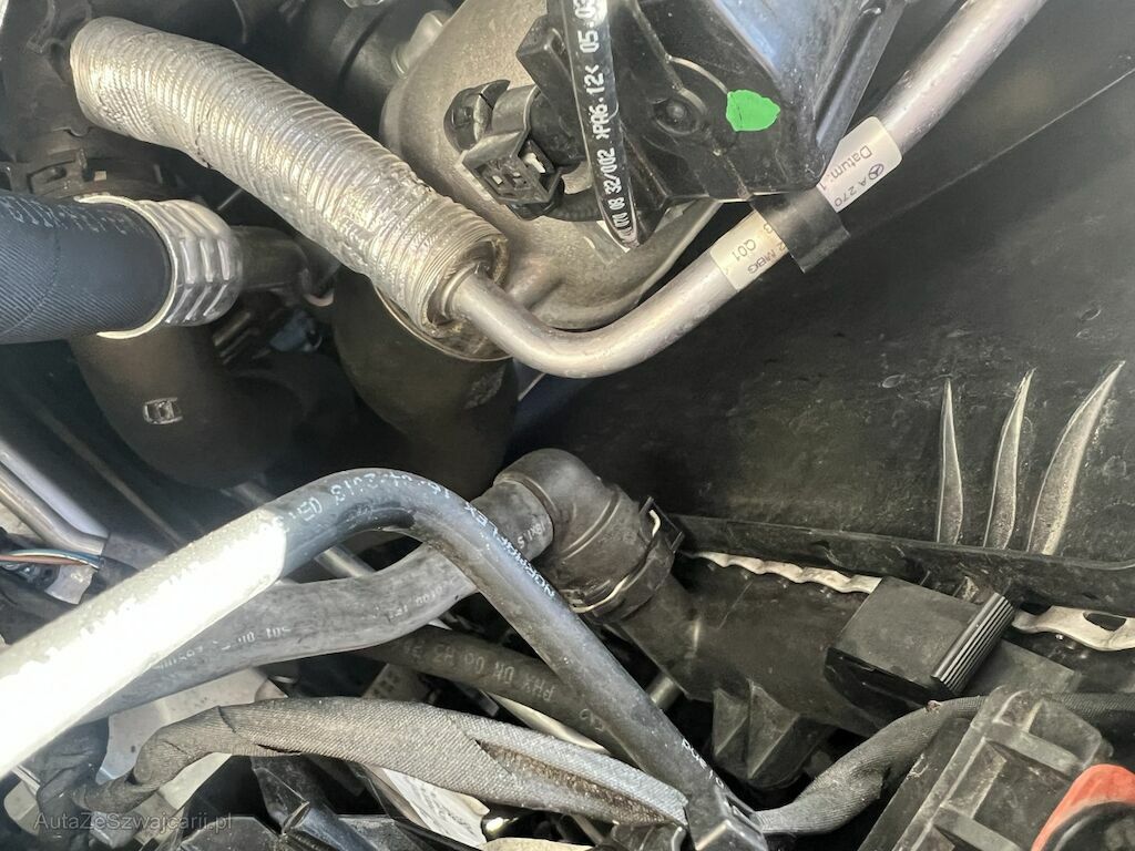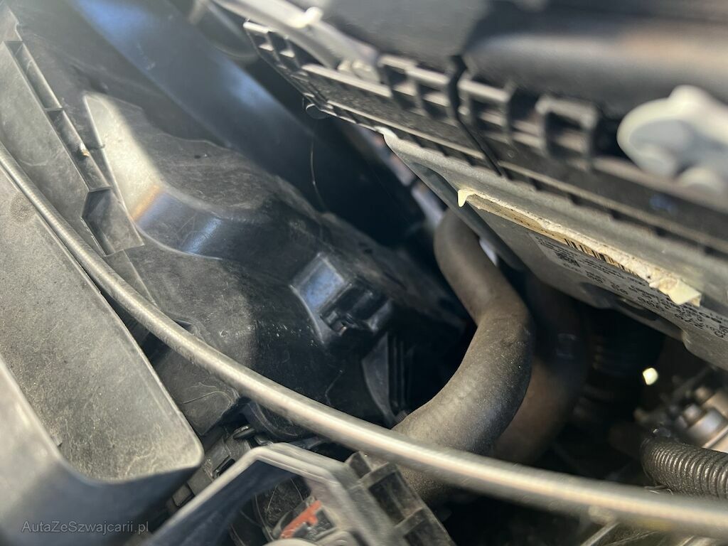 Verkleidung mit Anbauteilen, Luftführung, etc. beschädigt. Druckstellen vorne Klimakondensator. Kühler unten nach hinten gedrückt.