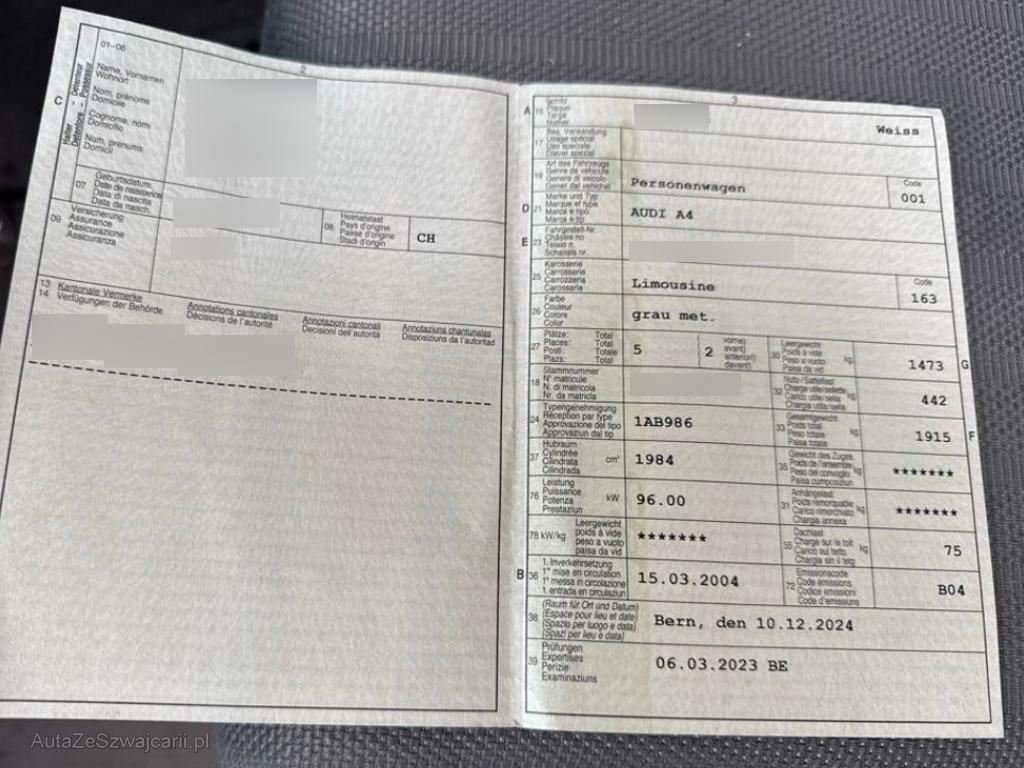 | Fahrzeugausweis | Vorhanden |