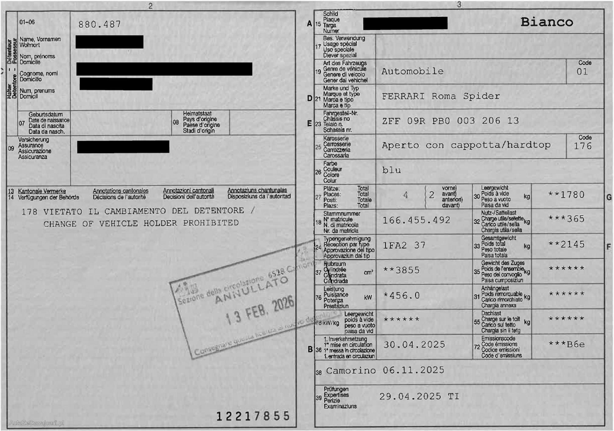 | VIN | ZFFXXX |