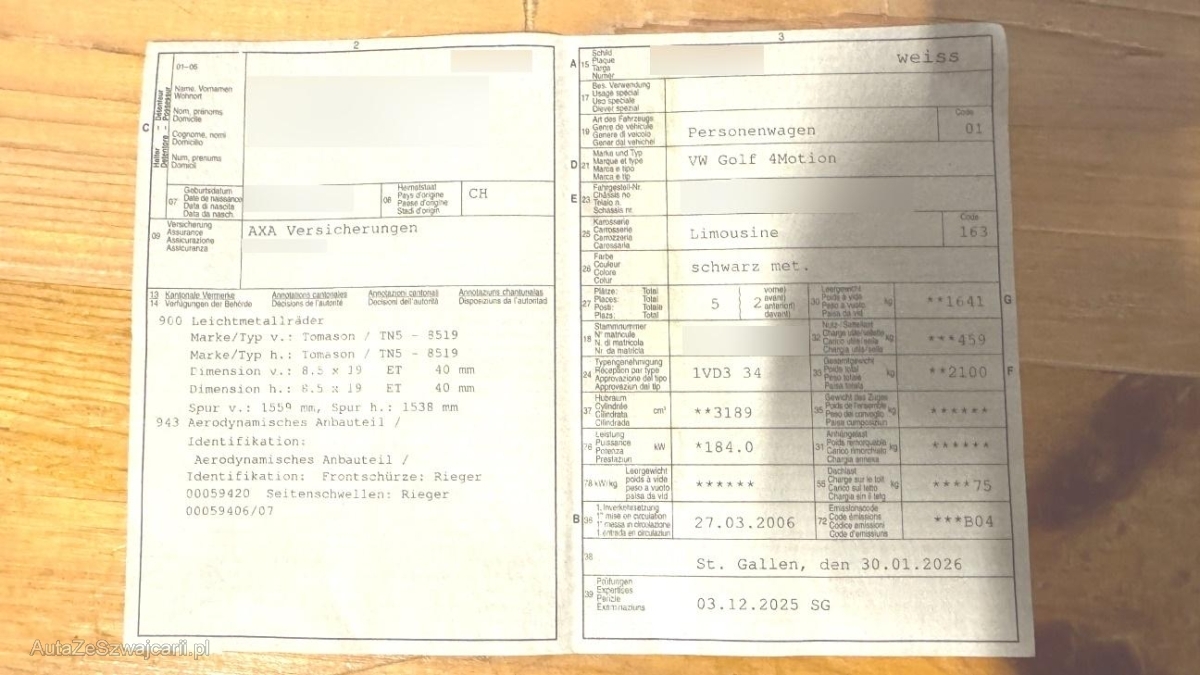 | Fahrzeugausweis | Vorhanden |