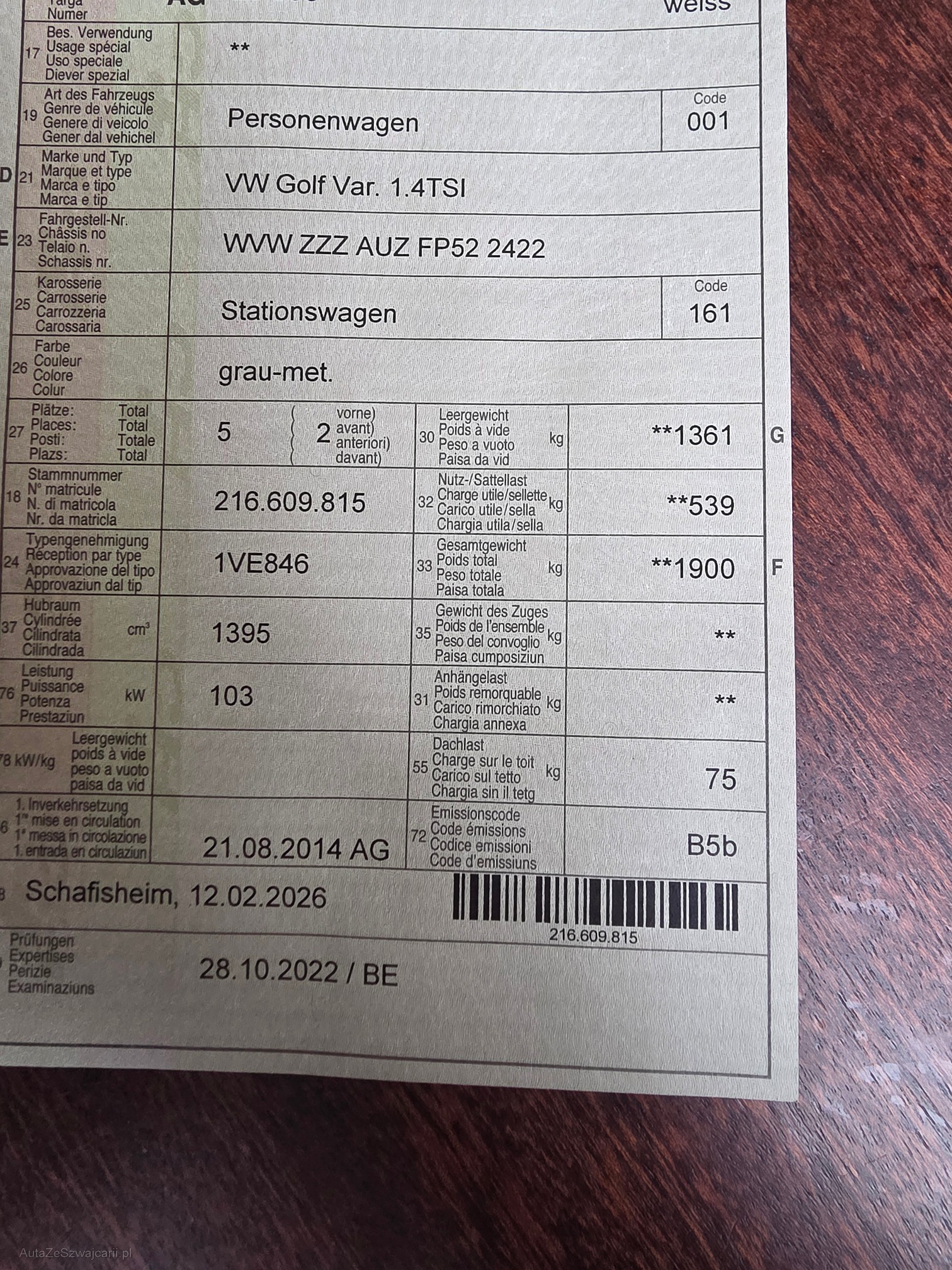 | Letzte Inspektion | 2022-10-01 |