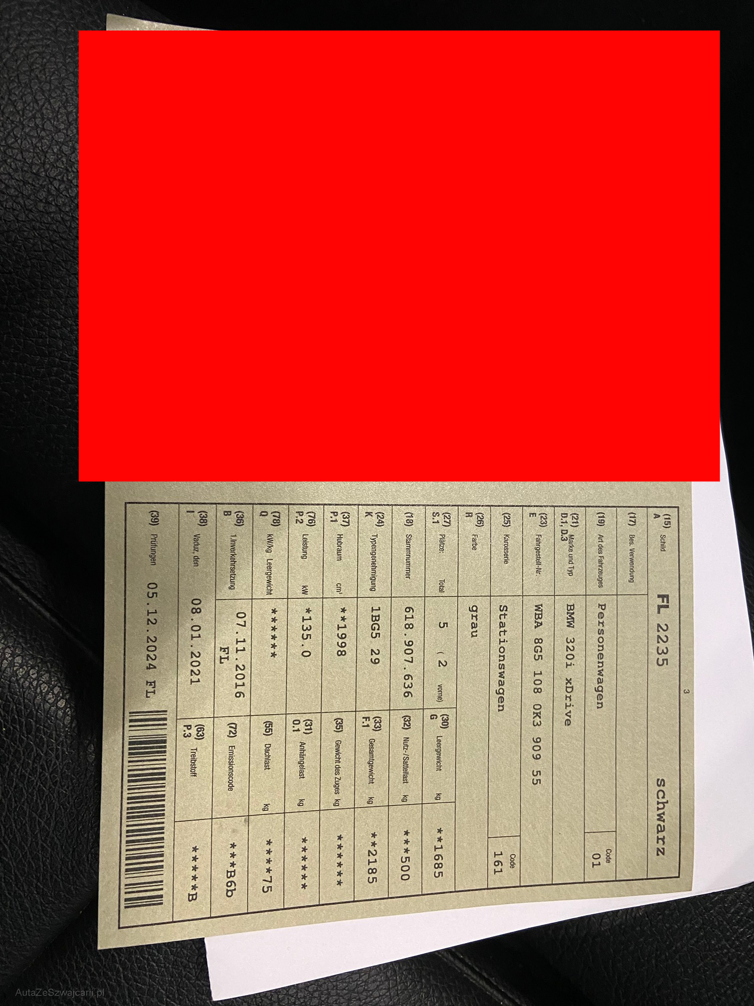 | Kommentar | Fahrzeug hat diverse Dellen, Kratzer und Beulen. Es leuchtet Fernlicht rechts prüfen auf. Genauer Grund unbekannt! Fehlerspeicher 8041B6, 8041BA, 031786, 805B15 Es wurde kein Eintauschcheck durchgeführt! Jegliche Gewährleistung wird wegbedungen, insbesondere sind Wandelung und Minderung ausgeschlossen. Die Verantwortung liegt beim Käufer. Rückgabe ausgeschlossen. Irrtümer vorbehalten. |