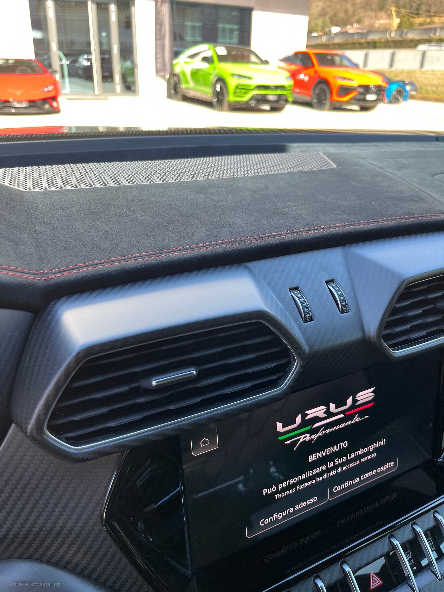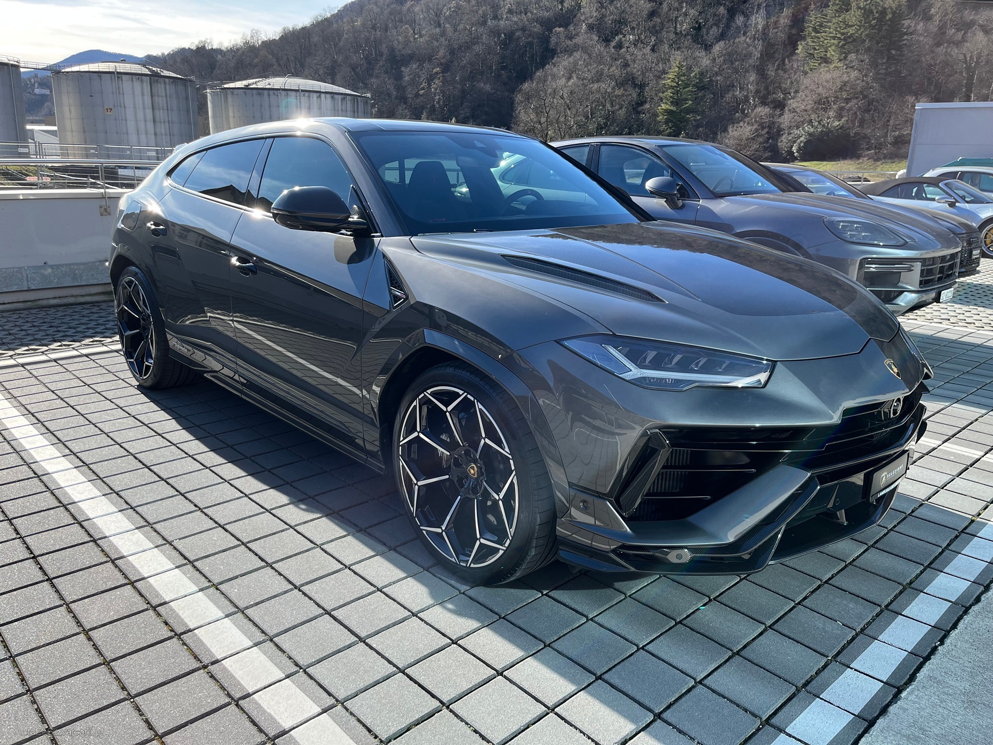 | Kommentar | Lamborghini Urus Performante Auto CH Main Paint - Grigio Keres Met. Unicolor Alcantara with Performante trim Seats in full Alcantara with Performante trim Stitching on steering wheel - Rosso Alala Rims Pelope 23" Diamond finished Shiny Black Titanium wheel bolts Brakes and Calipers Black Calipers Full Exterior Carbon fiber package - Shiny Bonnet in visible Carbon fiber Shiny Roof in Shiny Carbon Rear Lamborghini logo matt black Full Electric Front Seats with ventilation and massage Heated front seats Ambient Light Package Alcantara- headliner Big Interior Carbon Package Advanced Driving Assistant System Full ADAS Package DAB Radio Digital radio Advanced 3D "Bang&Olufsen Sound System" Head-Up Display Premium air quality system |