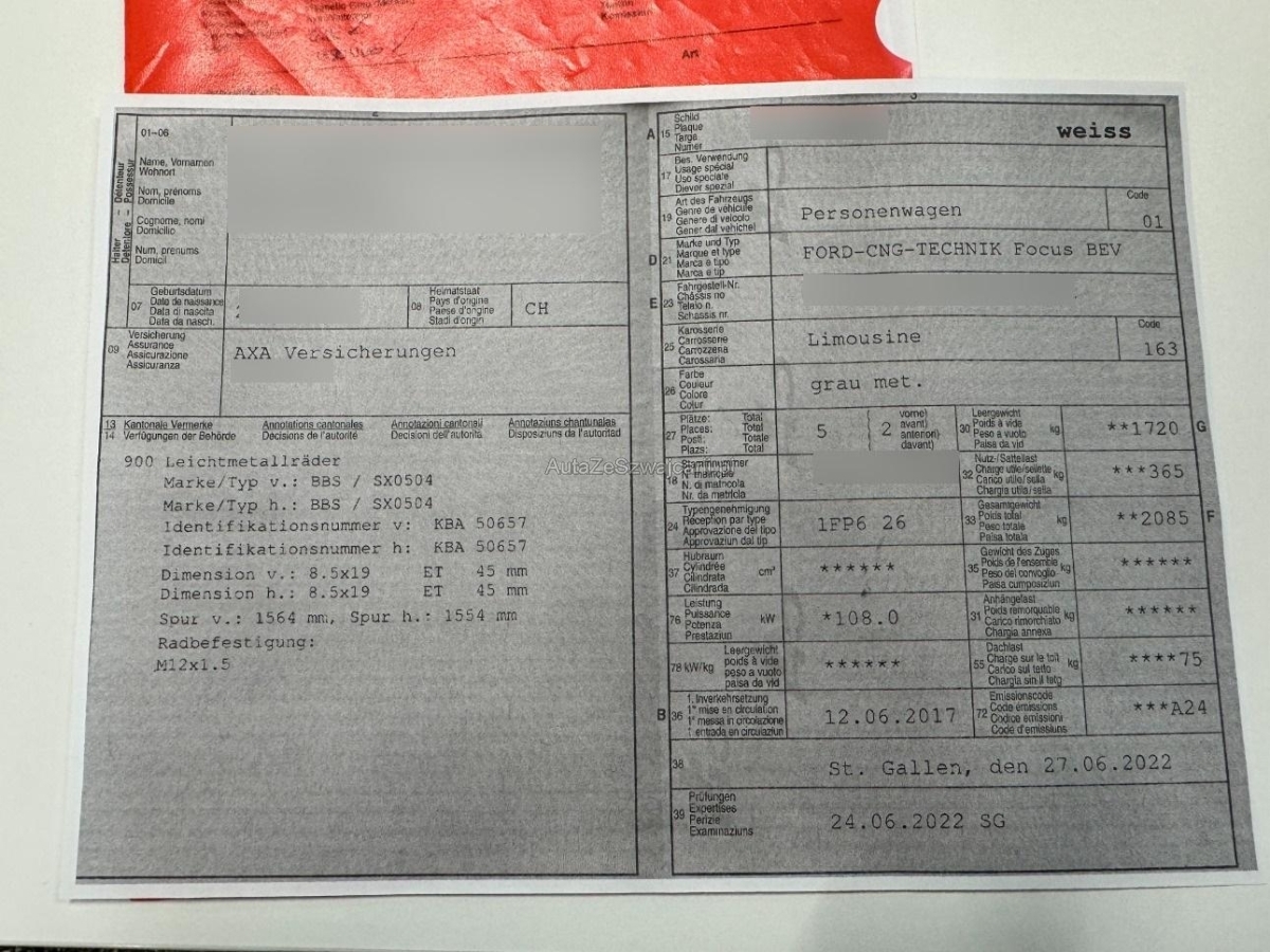 | Fahrzeugausweis | Vorhanden |