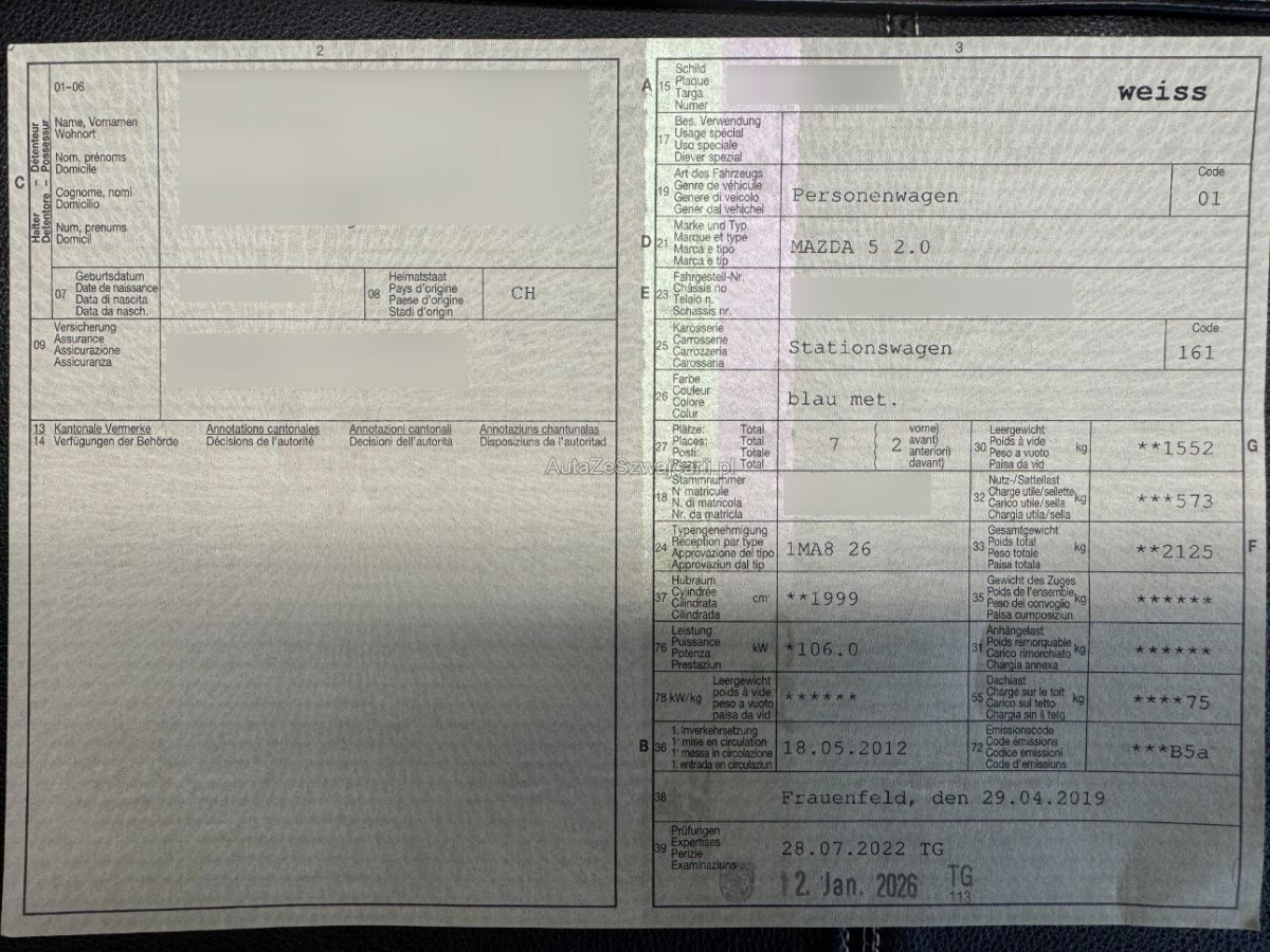 | Fahrzeugausweis | Vorhanden |