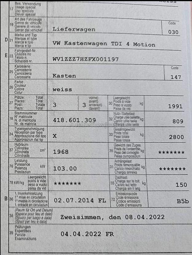 | Marka | VW Kastenwagen TDI |