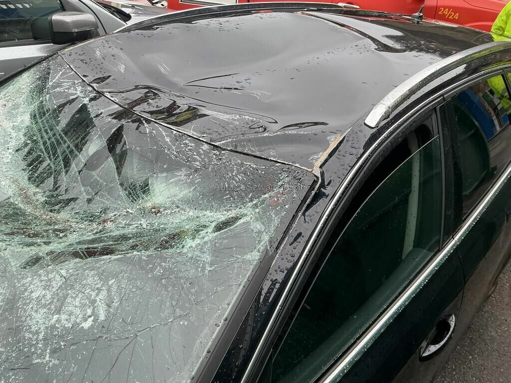 Le véhicule s'est retourné sur le toit: Pare-chocs, ailes, portes, toit, trains roulant, moteur, pare-brise, ciel de toit et bords de toit endommagés.