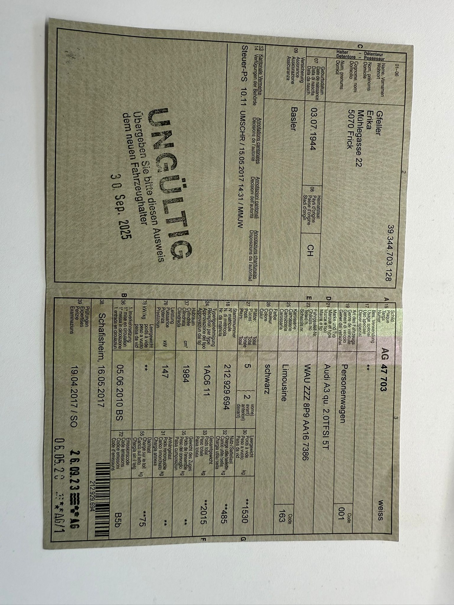 | Kommentar | Am Fahrzeug wurde kein Eintauschtest gemacht. Karosserie hat Gebrauchsspuren, Beule Türe hinten rechts. Fahrzeug ab Platz, keine Garantie und keine Gewährleistung. Kein Nachverhandeln. 4 neue Winterpneu. |