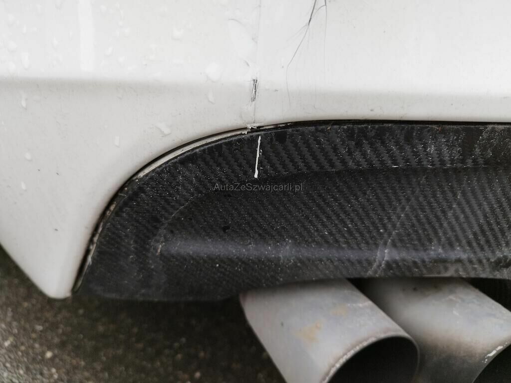 Die Stossstange vorne ist gerissen, diverse Anbauteile sind gerissen, der Kühler ist deformiert (Spezialkühler montiert), der Schlossträger ist gerissen, beide Felgen vorne haben Kratzspuren, der Reifen vorne links ist platt.