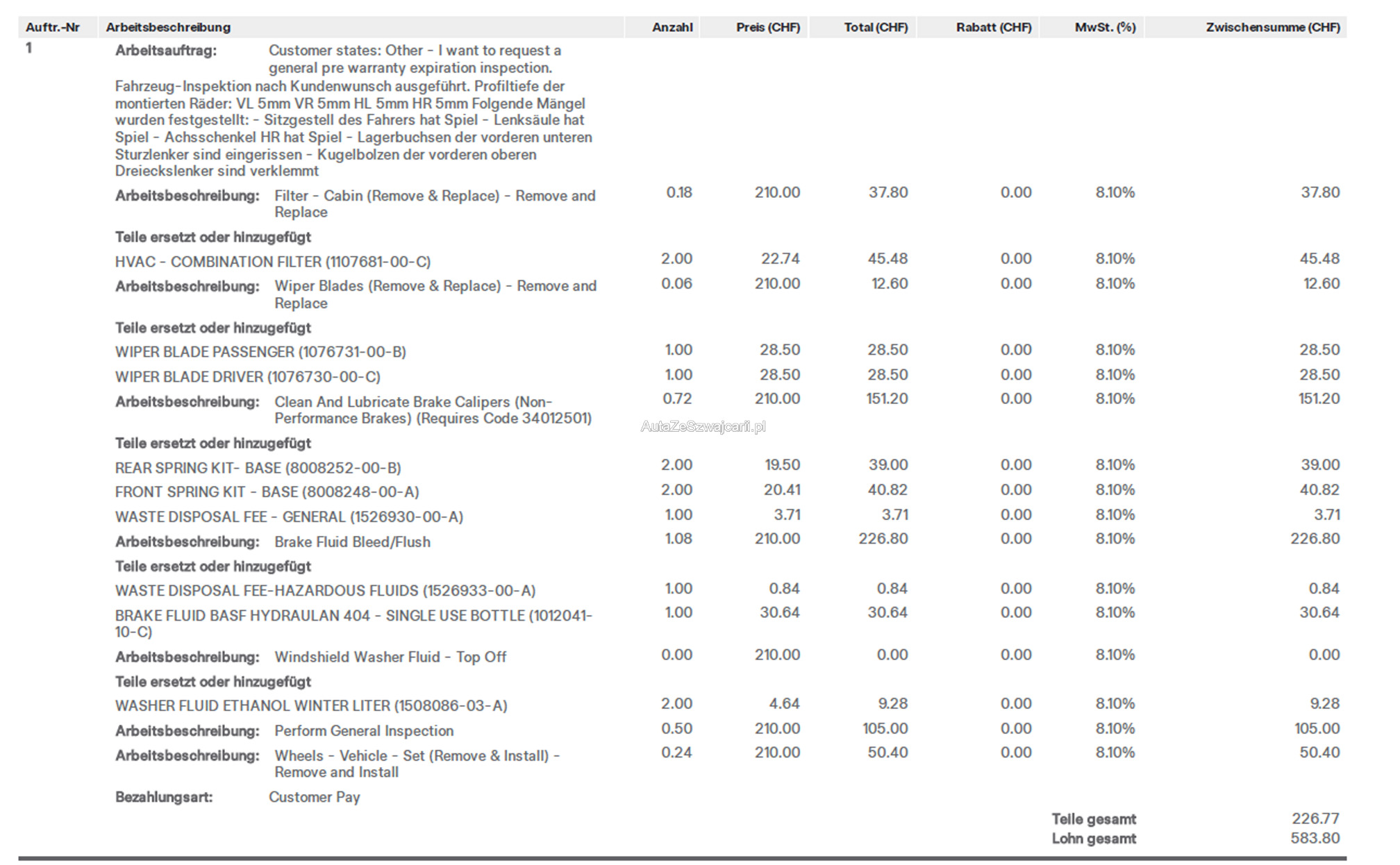 | Vordere Bremsen müssen ersetzt werden | No |