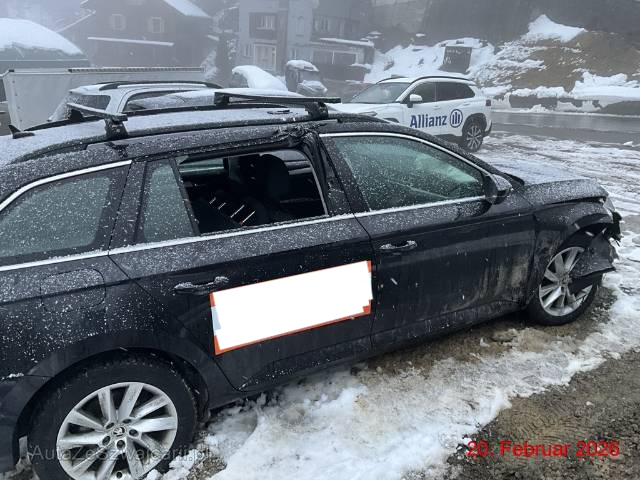 | Schadensbeschreibung | Motorhaube, Kotflügel, Radhaus vorne rechts eingedrückt. Radaufhängung verformt. Stossstange, Scheinwerfer rechts gebrochen. Tür, Dachrahmen hinten rechts eingedrückt. Kotflügel, Türen, Seitenwand links eingedrückt. Rückspiegel links gebrochen. Airbag vorne beidseitig ausgelöst. Gurtstraffer alle ausgelöst. AUFZÄHLUNG NICHT ABSCHLIESSEND / Vorbestandene Schäden: keine ersichtlich |