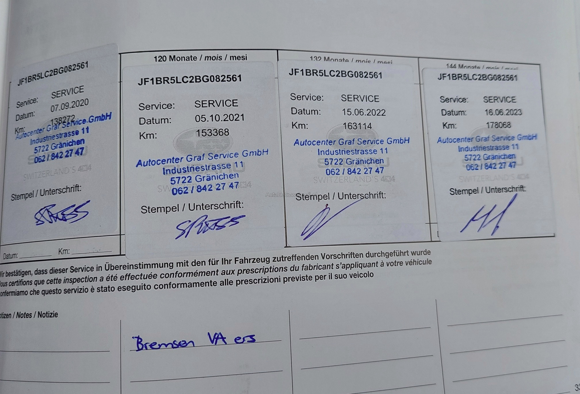 | Kommentar | Carrosserieschäden gem. Fotos. Es wurde keine techn. Prüfung durchgeführt. Beim letzten Service im September 2025 wurde ein neuer Auspuff-Endtopf und neues Auspuff-Mittelrohr montiert. |