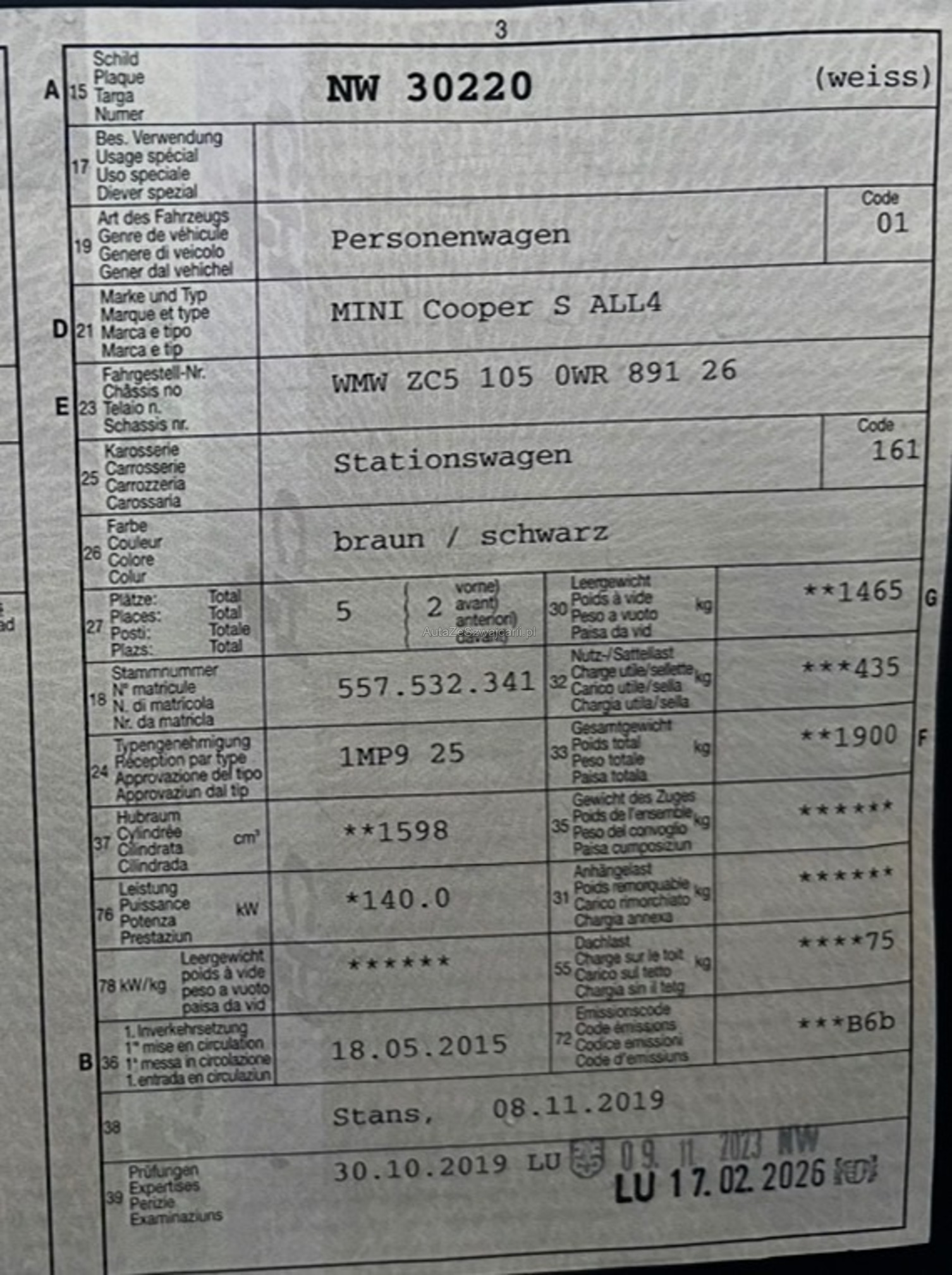 | VIN | WMWXXX |