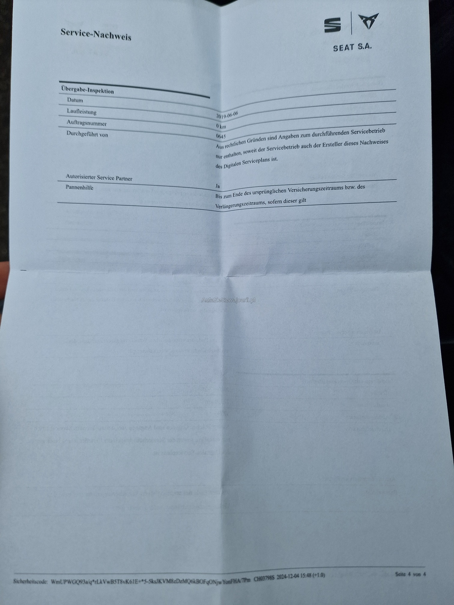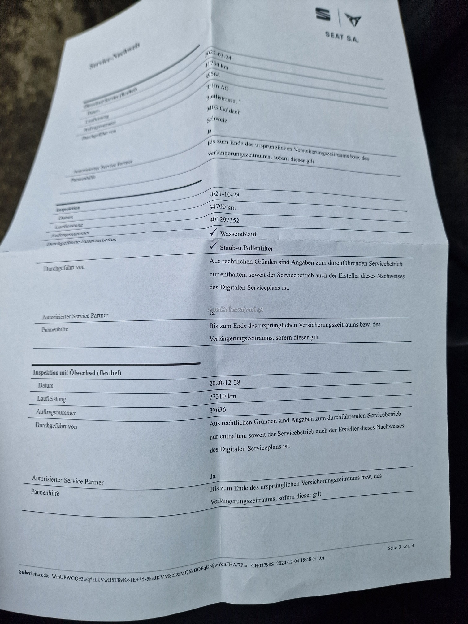 | Kommentar | - Rückfahrkamera, ACC, Navi, Beats Sound System, Keyless, CUPRA Schalensitze, etc. - Aussen und Innen kleinere Gebrauchsspuren gemäss Fotos - etwas wenig Kühlwasser, unten am Motor eingetrocknete Spuren von Wasserpumpe oder Wärmetauscher -> keine Diagnose durchgeführt! (gemäss Kunde wurde Wasserpumpe mal getauscht) - Fahrzeug noch im Kundenbesitz - Kein Eintauschtest / Diagnose durchgeführt - keine Nachverhandlung und / oder Nachwährschaft |