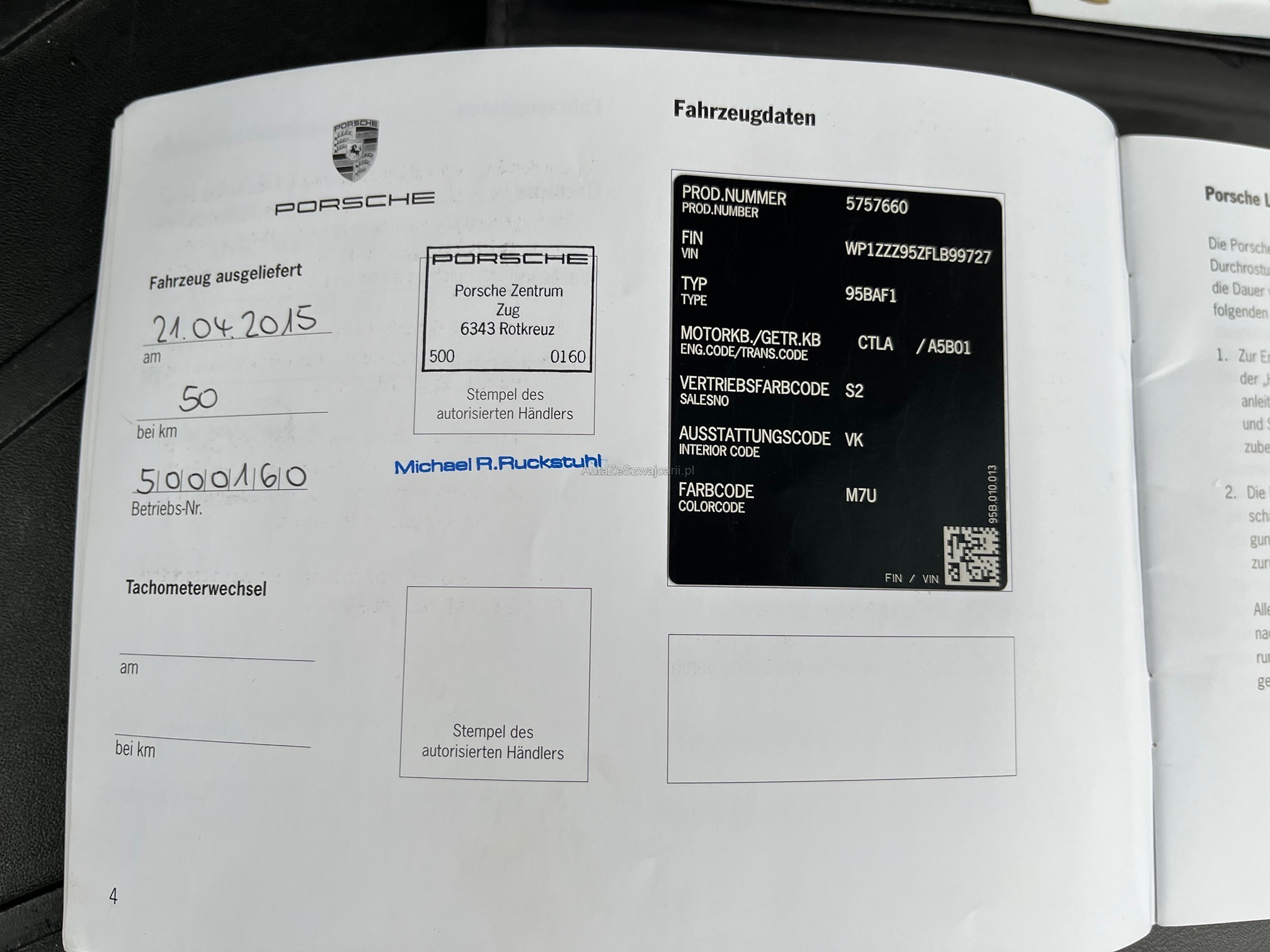 | Kommentar | Zustand siehe Fotos. 1 Vorbesitzer. Alle Services bei Porsche gemacht, zuletzt in 08/2025 bei 171'800 KM. Ausstattung siehe pdf. |