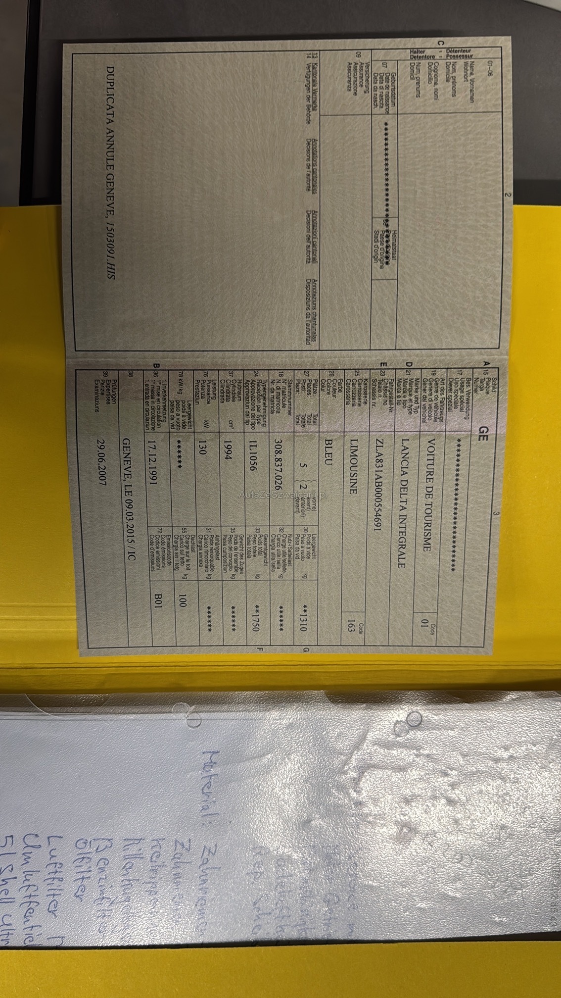 | Kommentar | Ch auto ohne rost auto stand die letzten 15 jahre bei mir in der Garage Motor revidiert seitdem 50000km gelaufen Motor komplett originaler zustand Neues gewinde fahwerk Neue reifen neue felgen neuer endschalldämpfer Neu bezogenes evo 2 interieur Auto fährt einwandfrei Sämtliche ch papiere und orignalteile Vorhanden!!! |