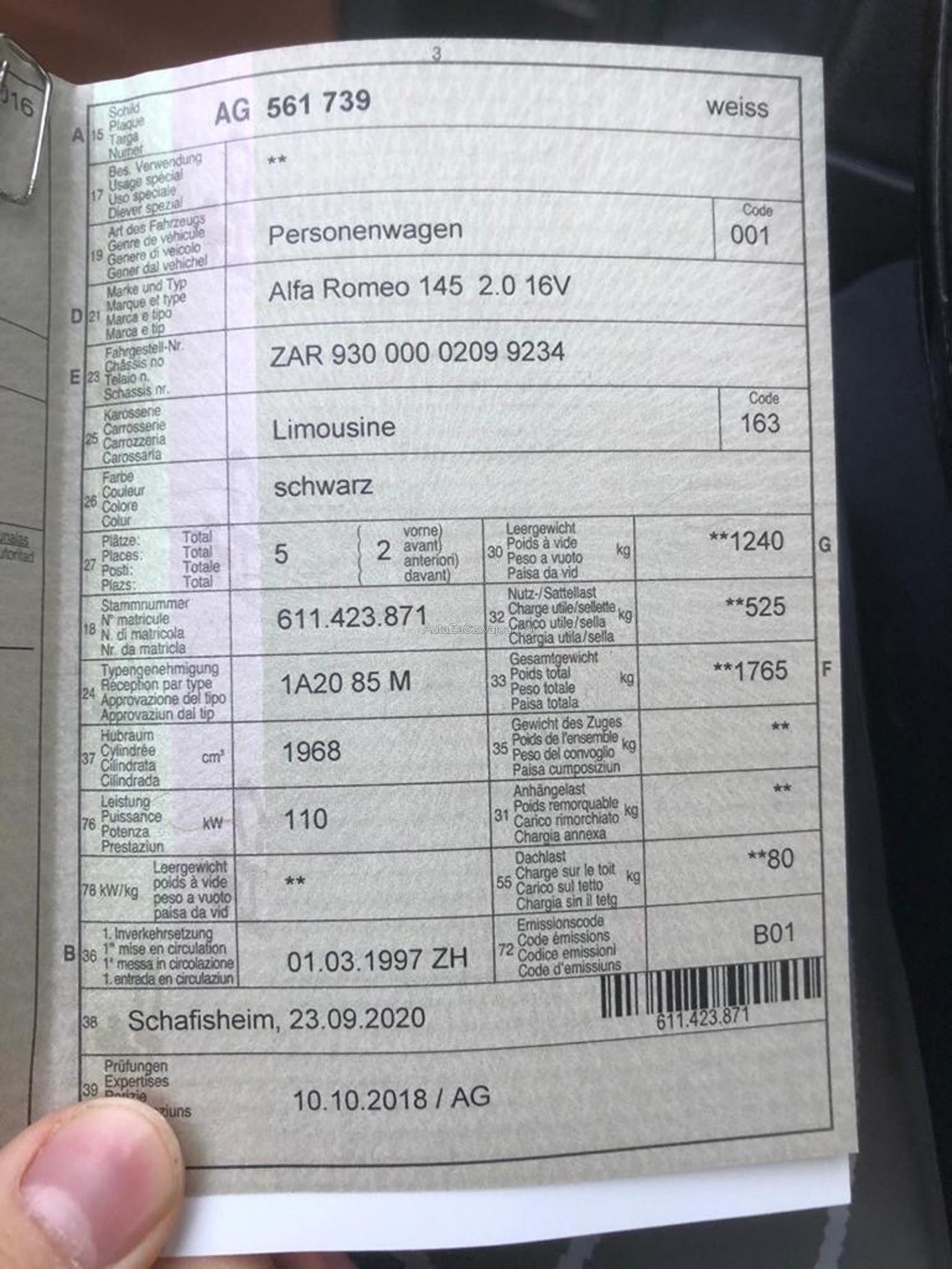 1. rejestracja: 1 marca 1997