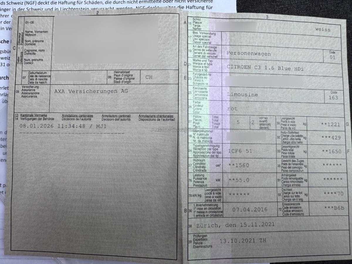 | Fahrzeugausweis | Vorhanden |