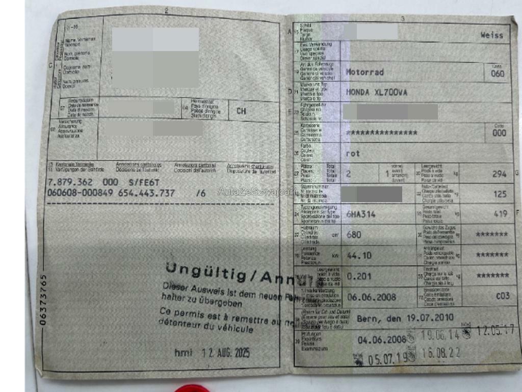 | Fahrzeugausweis | Vorhanden |