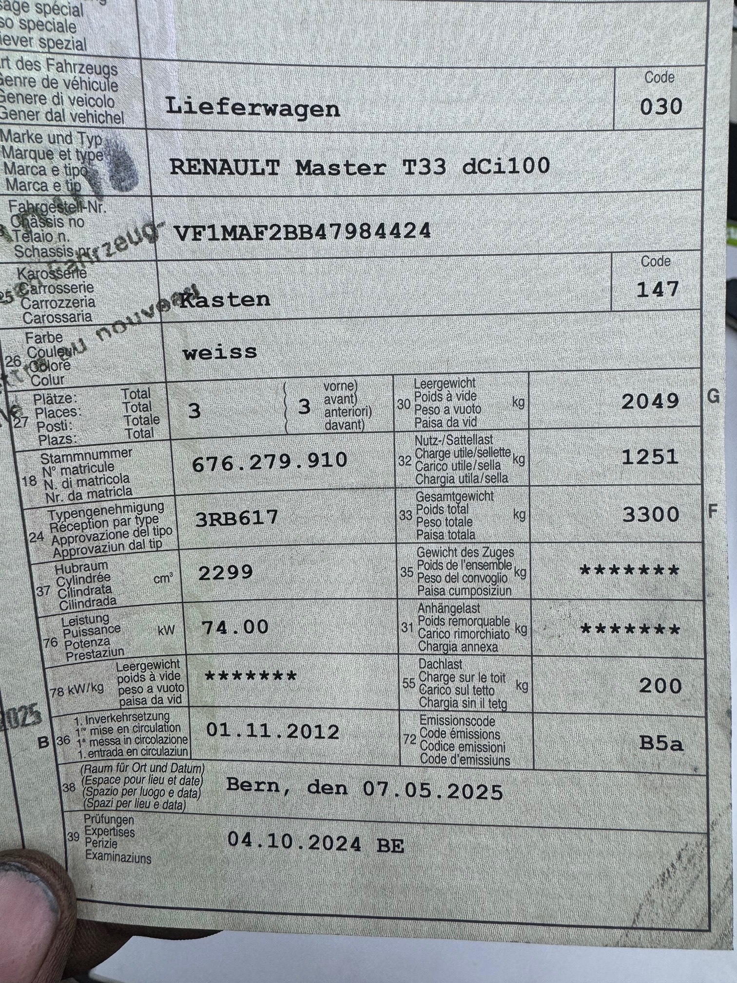 | Kommentar | Trotz der Laufleistung läuft das Fahrzeug einwandfrei und ist gepflegt. Altersentsprechend Gebrauchsspuren ( Siehe Bilder ) Karrosserie gemäss Bilder Es wurde kein Werkstatttest gemacht, für sichtbare und nicht sichtbare Schäden wird nicht gehaftet ! Keine mechanische Prüfung, Fahrzeugkauf auf eigenes Risiko ab Platz ohne Nachwährschaft. Die Gewährleistung für Sachmängel wird wegbedungen. Nachdem der Höchstbietende den Zuschlag erhalten hat, gibt es keine Nachverhandlung, auch wenn nicht deklarierte Mängel zum Vorschein kommen sollten. |