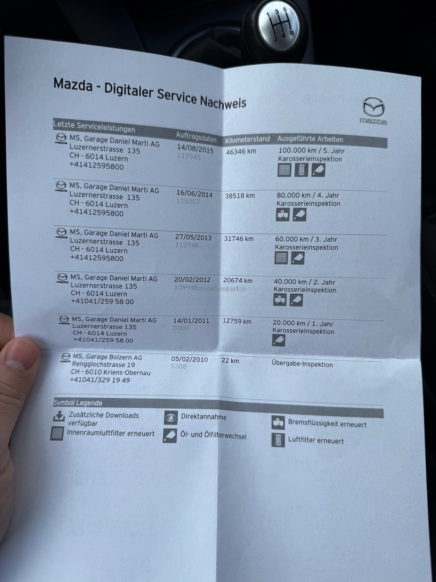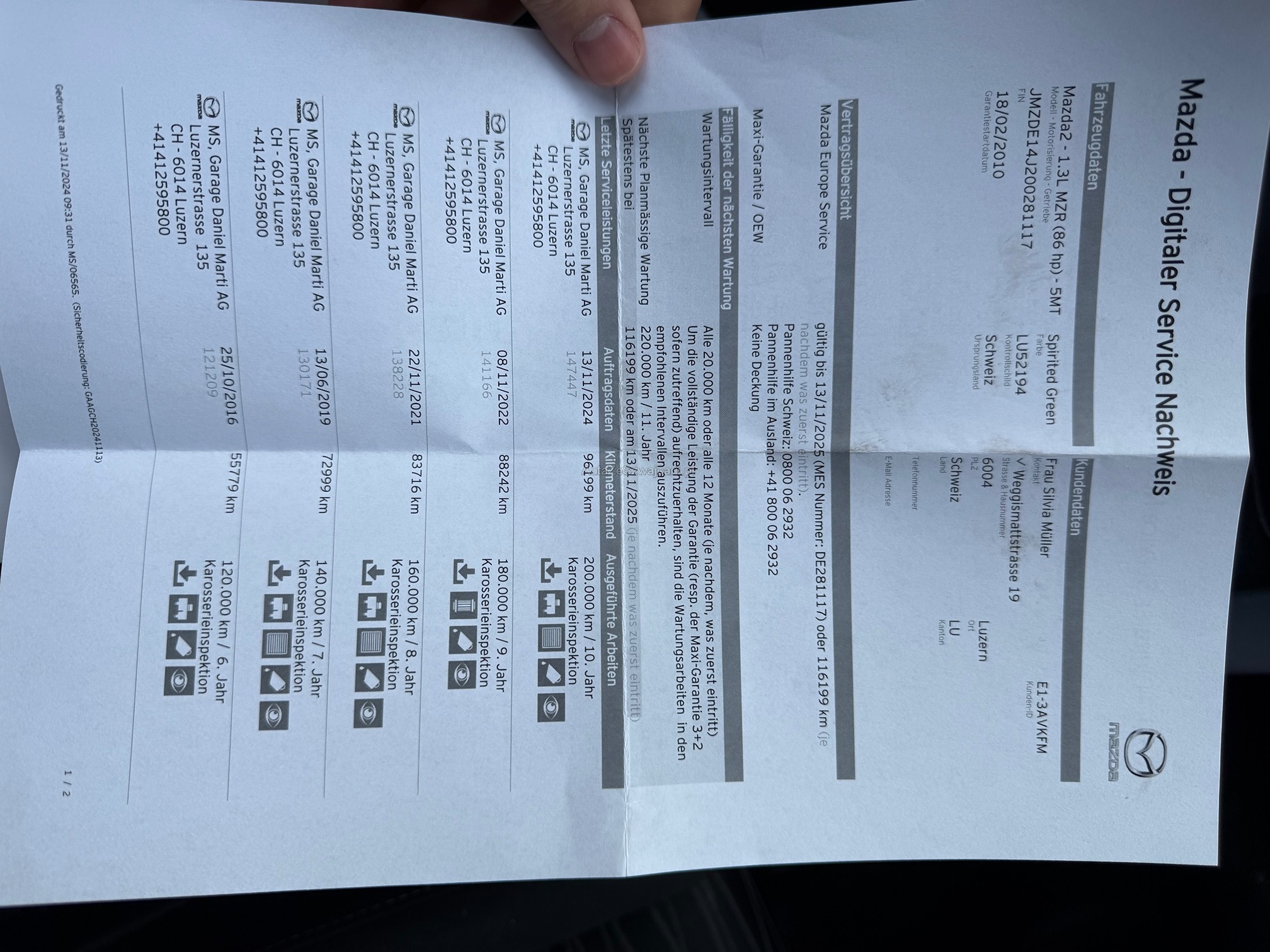 | Kommentar | Service gepflegt, Ab Platz, am Fahrzeug wurde kein Werkstatttest gemacht. |