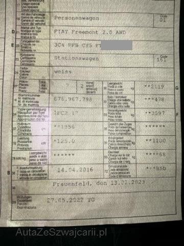 | Condition_and_Equipment | Zustand Fahrzeug muss transportiert werden (Höhe und Breite beachten). Fahrzeug ist fahrbar. Bereifung Fahrzeug wird mit Winterräder abgegeben. Zweiter Radsatz vorhanden Sonstiges Fahrzeugdokumente vorhanden. --- Front Front eingedrückt. Front rechts eingedrückt. Frontblech/Maskenblech eingedrückt. Sonstige Schäden Div.Carrosserie Teile sind leicht beschädigt. Div. Roststellen am Fahrzeug. Weitere Beschädigungen Scheinwerfer Rechts beschädigt! Schlossträger beschädigt! Beifahrersitz an der Rückseite beschädigt! Stossstange und Kühlergrill beschädigt!Scheinwerfer R beschädigt! Schlossträger beschädigt! Beifahrersitz an der Rückseite beschädigt! Stossstange und Kühlergrill beschädigt! --- Serienaustattung Airbag Fahrer und Beifahrerseite Sitzheizung vorne Tempomat Bordcomputer ABS Antiblockiersystem ESP Elektronisches Stabilitätsprogramm Nebelscheinwerfer Zentralverriegelung mit Fernbedienung Lederlenkrad Alarmanlage Multifunktionslenkrad Keyless-Go Gepäckbefestigungsnetz Lederschaltknauf Aussenspiegel elektrisch verstellbar/ heizbar und anklappbar Navigationssystem/ Audio Dunkelgetönte Seitenscheiben hinten Isofix-Kindersitzbefestigung Leichtmetallfelgen 19" Rückfahrkamera Park-Distanz-Sensor hinten Lordosenstütze für Fahrer Seitenairbags Dieselpartikelfilter Fahrersitz 6-fach elektrisch verstellbar Kit Fix & Go Reifendruck-Sensoren RDS Keyless Entry System Lederausstattung/ Sitzheizung vorne Uconnect Freisprecheinrichtung 7 Platz-Konfiguration Keine Gewähr auf die Angaben der Serienausstattungen Pack Navigation/ Sound Fensterheber elektrisch vorne + hinten Sonderausstattung Uni-Lackierung Ausstattung Anhängerkupplung Klimaanlage Leichtmetall-Felgen Navigationsgerät Rückfahrkamera Rückfahrsensoren Winterräder MIT Leichtmetall-Felgen. Sonstige Ausstattung und Zubehör Anhängerkupplung, Brock Alufelgensatz 20" |