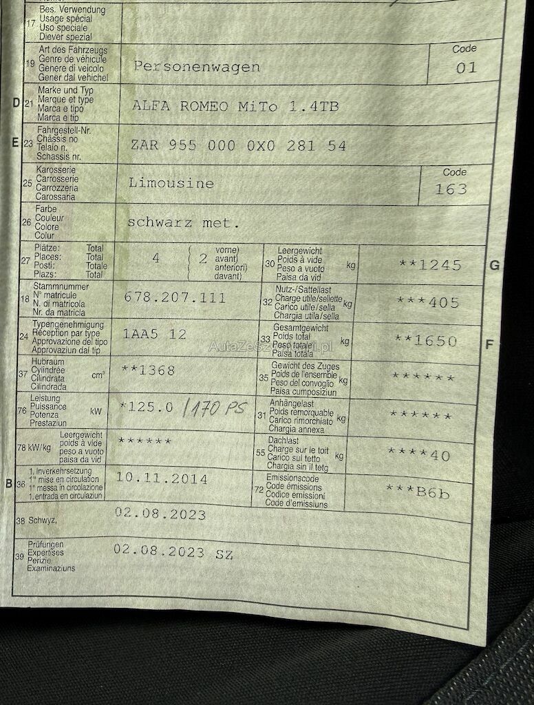 | Typ | Mi To 1.4TB Quadrifoglio Verde |