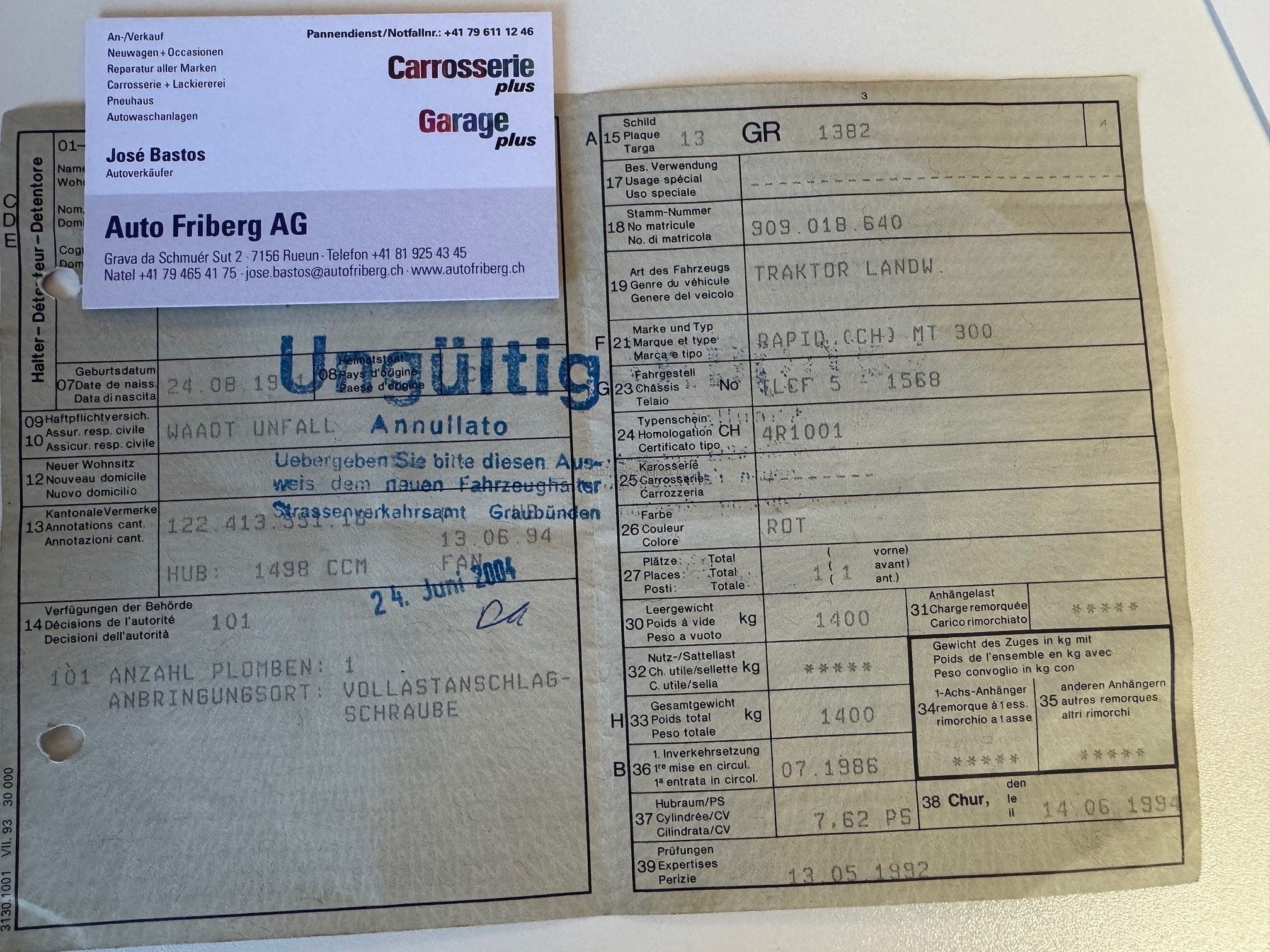 | Letzte Inspektion | 1992-05-01 |