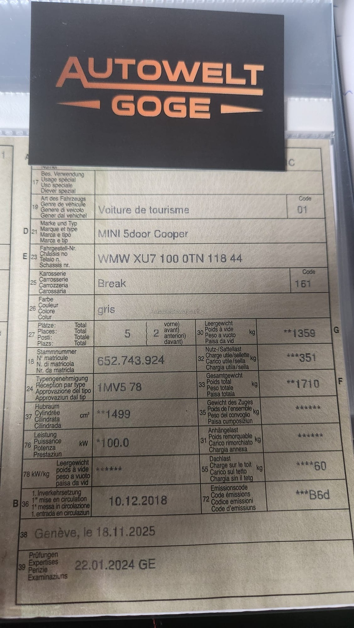 | VIN | WMWXXX |