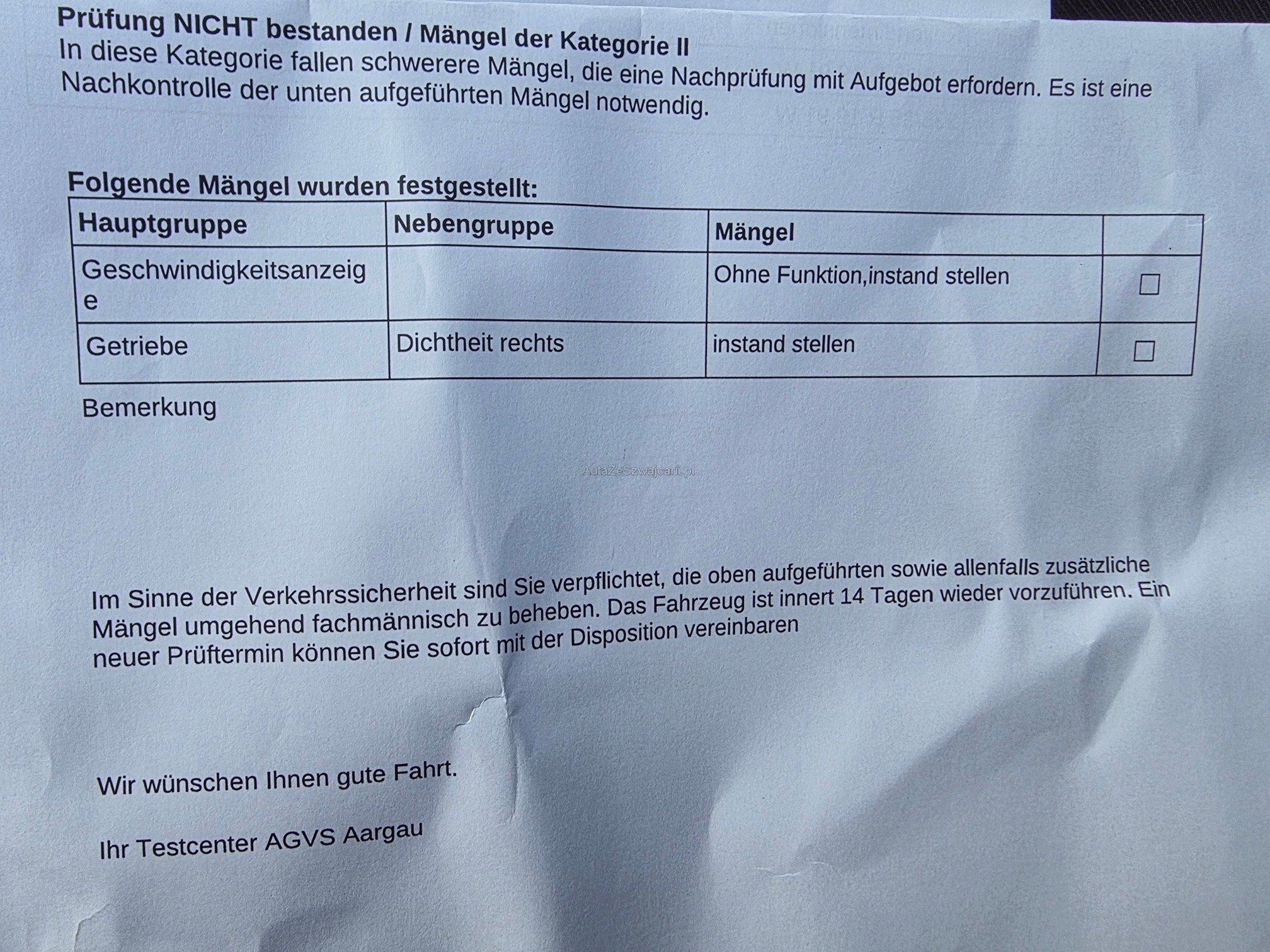 | Getriebe defekt nicht funktionsfähig | No |