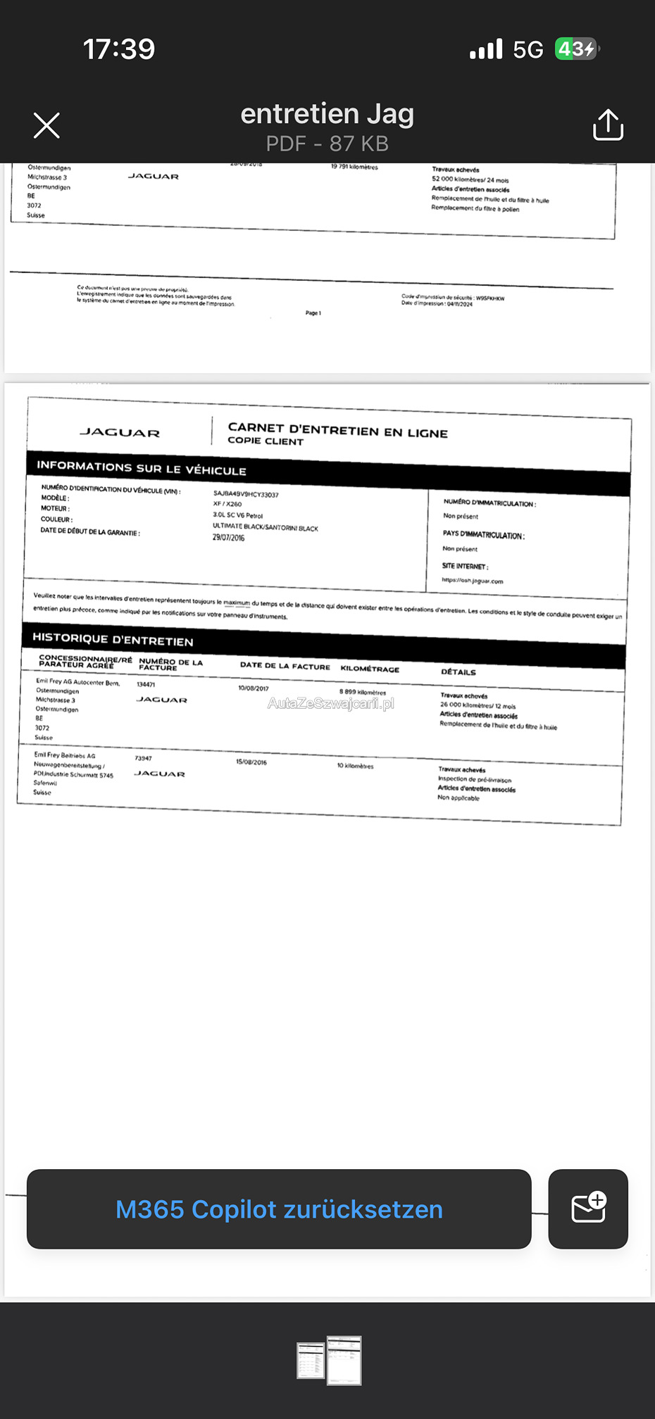 | Kommentar | Es wurde kein Werkstatttest und keine Probefahrt durchgeführt. Die Bilder stammen vom Kunden. |