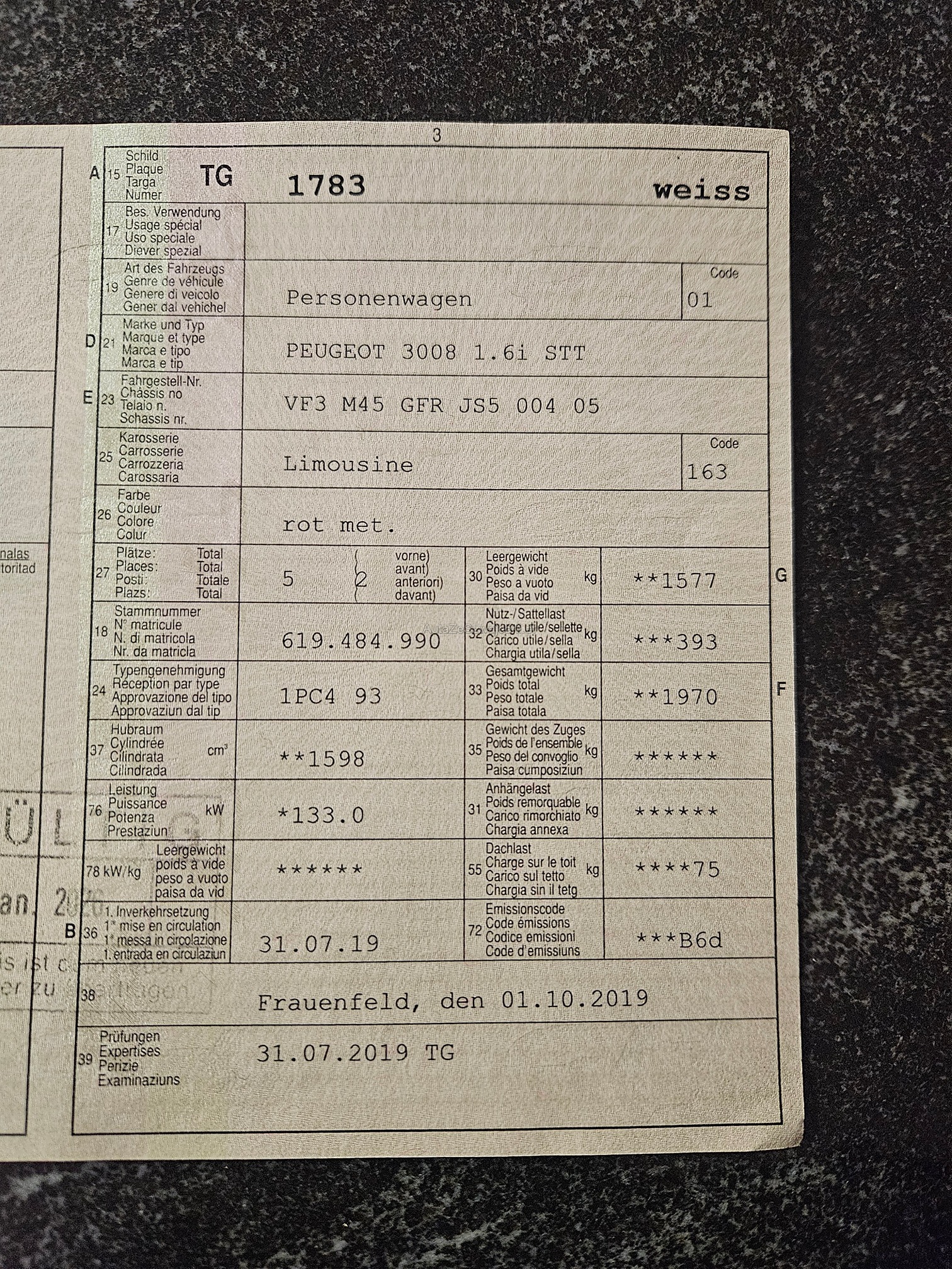 | VIN | VF3XXX |