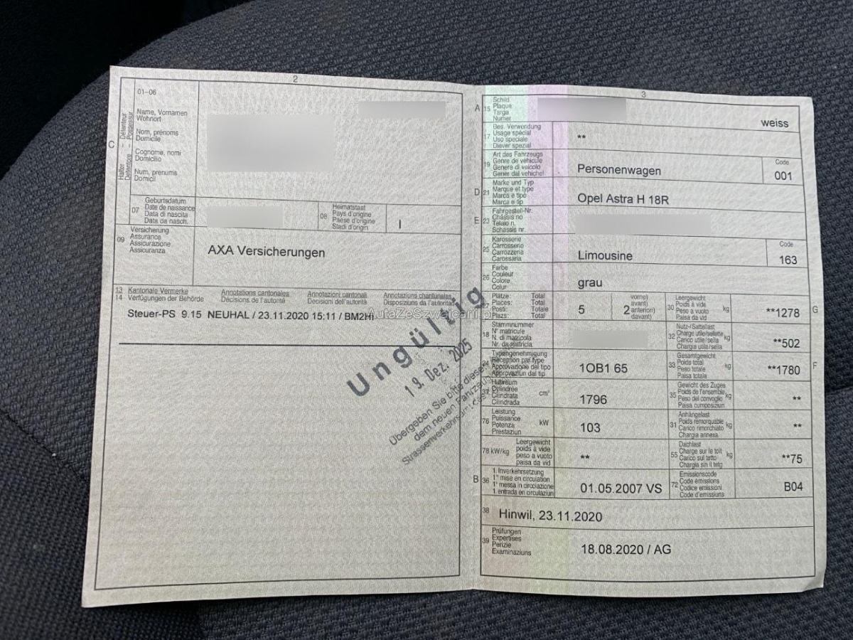 | Fahrzeugausweis | Vorhanden |