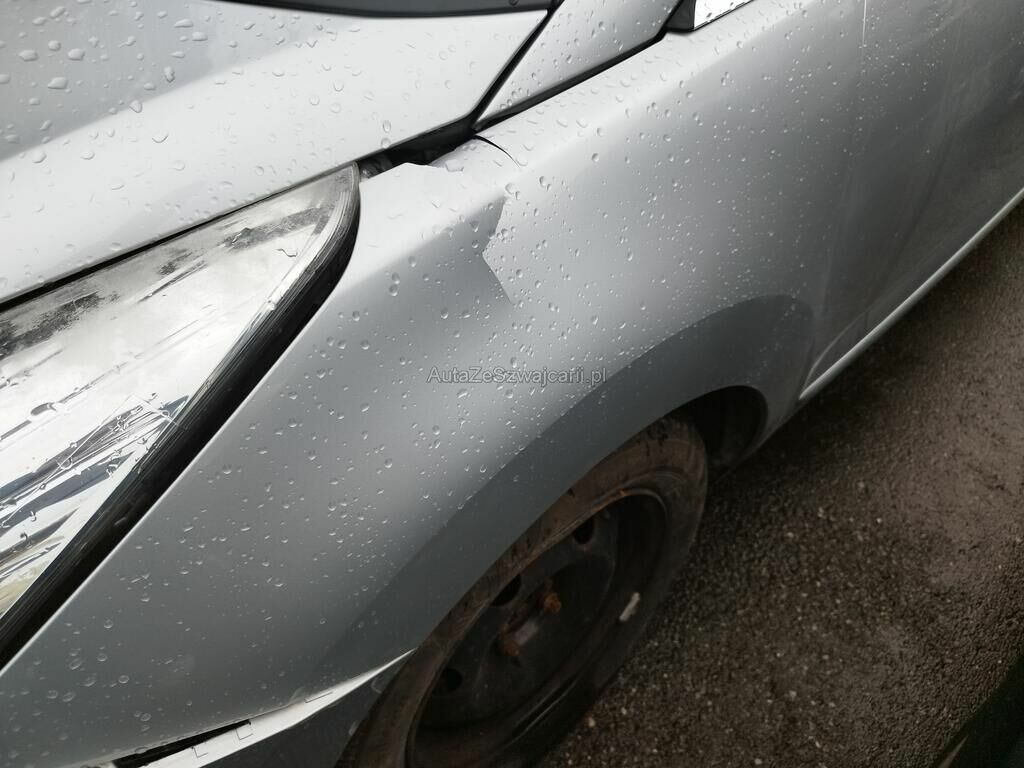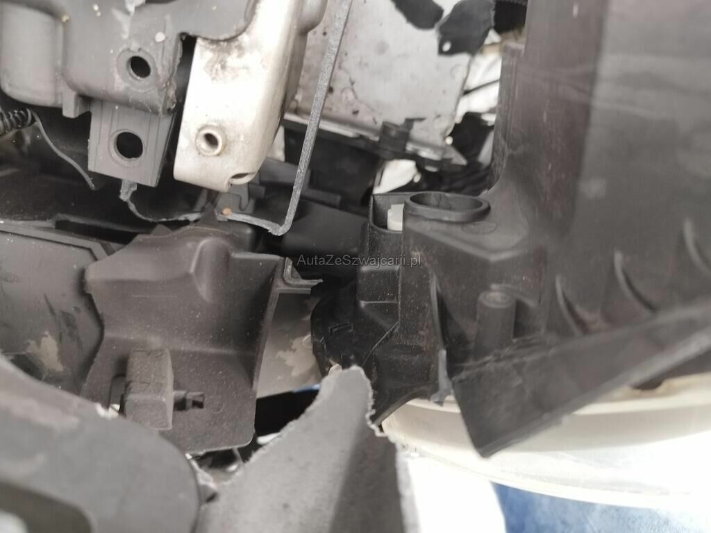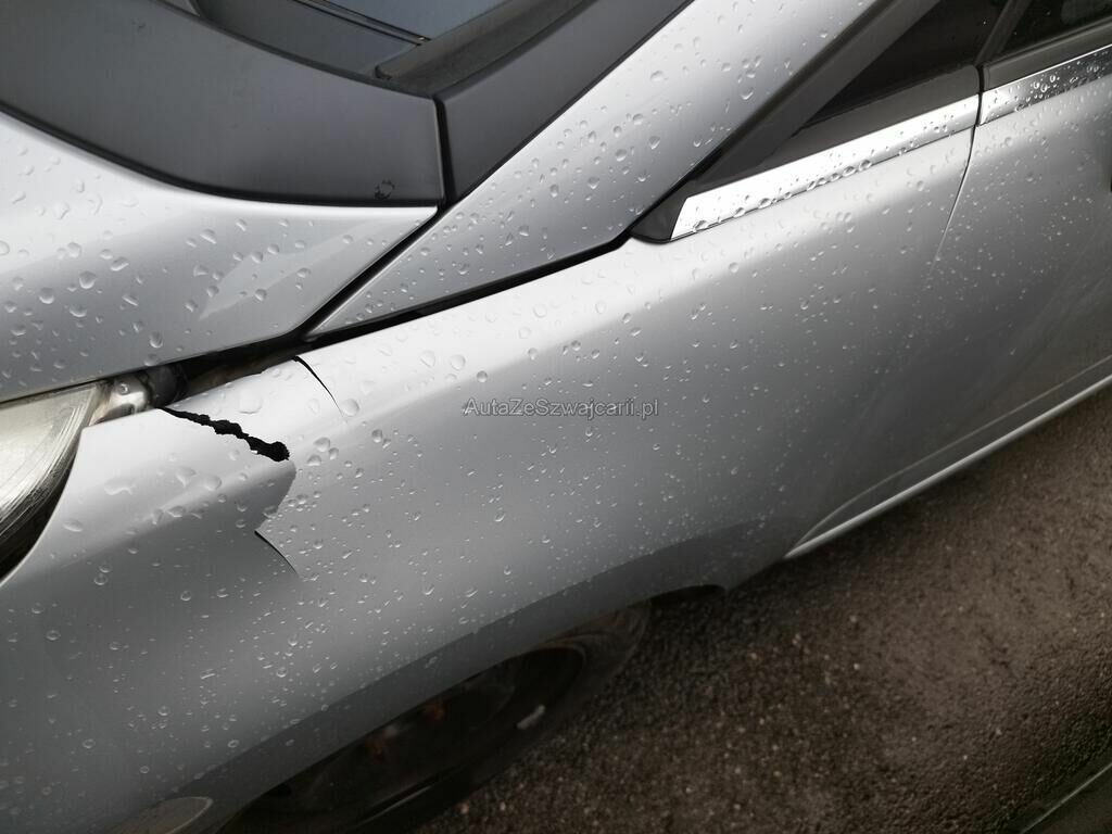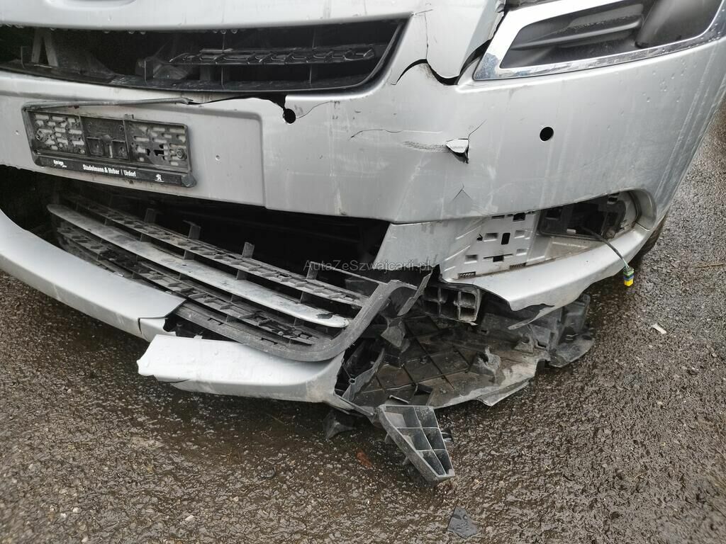 Die Stossstange vorne ist gerissen, diverse Anbauteile sind ausgerissen, der Scheinwerfer vorne links ist gerissen, die Motorhaube ist deformiert, der Kotflügel vorne links ist gerissen, die Felge vorne links ist deformiert.