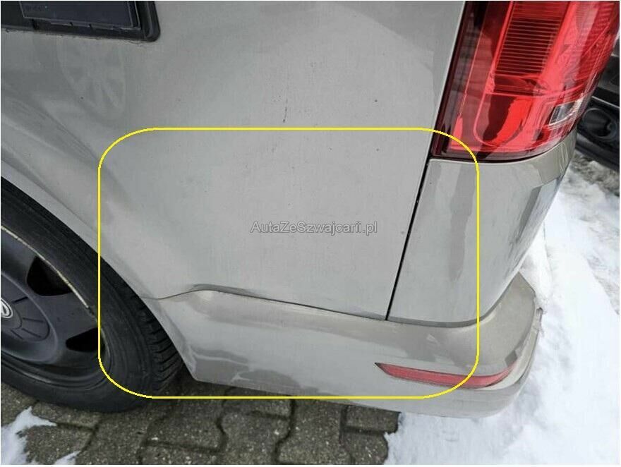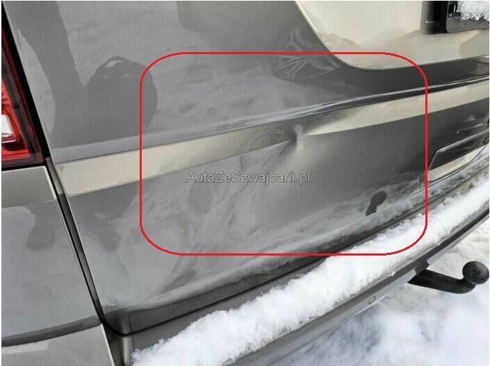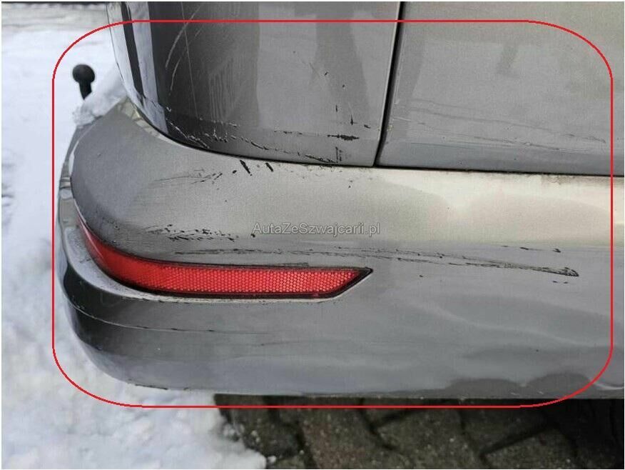 Seitenwand hinten links eingedellt und gestaucht, Stossstangenabdeckung und Blende hinten links beschädigt.