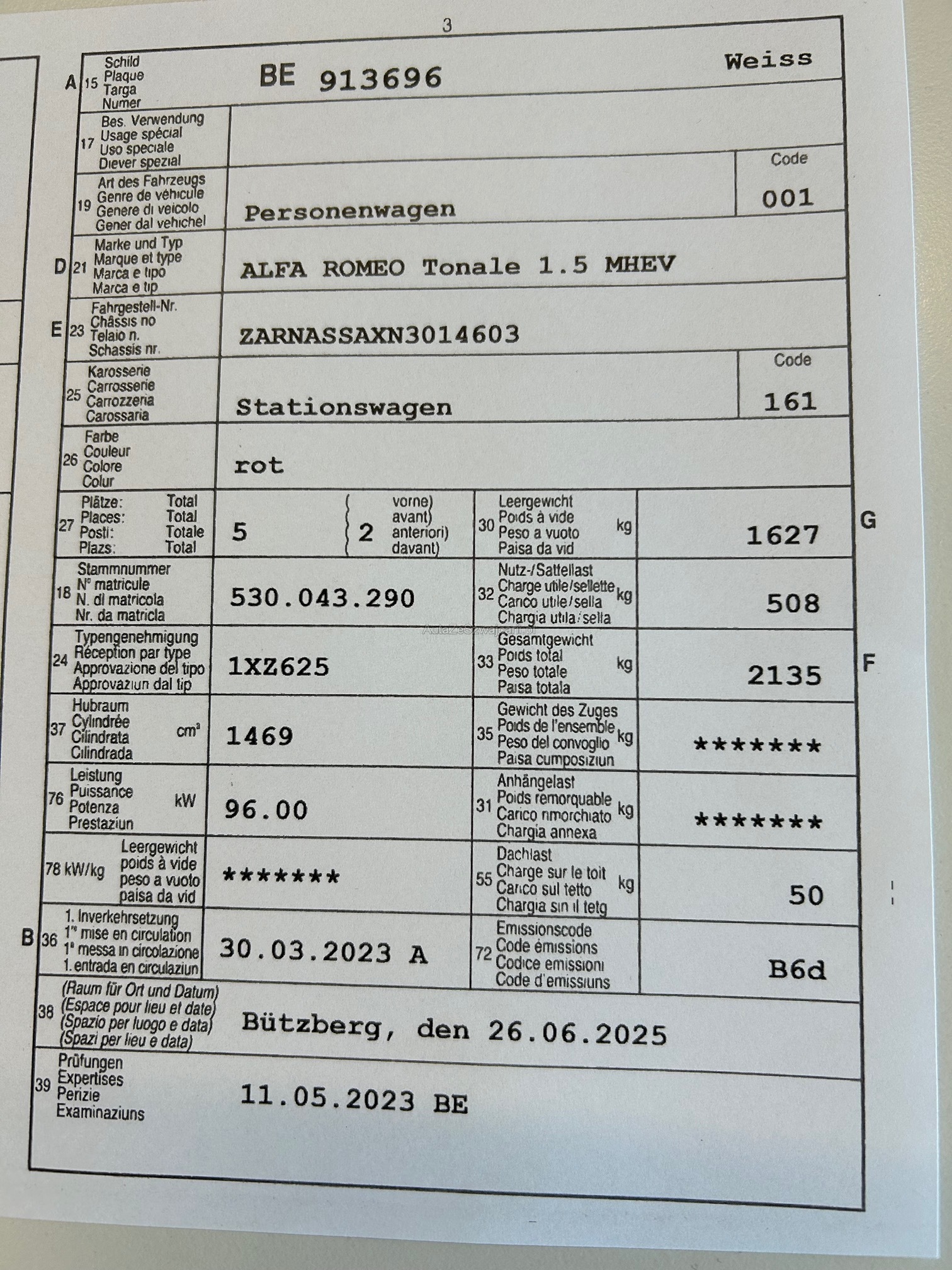 | VIN | ZARXXX |