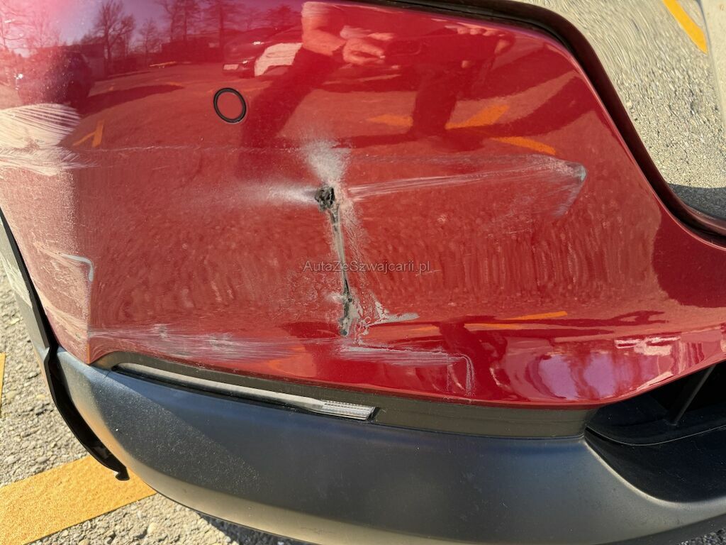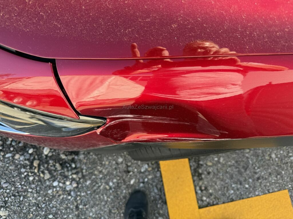 Schaden rundum: Stossfänger vorne rechts geschrammt. Leichtmetallfelge beschädigt. Kotflügel links eingedrückt. Scheinwerfer links beschädigt. Leichtmetallfelge beschädigt. Hinterachse links mit Leichtmetallfelge abgerissen. Reifen beschädigt. Stossfänger hinten geschrammt. Seitenwand leicht zerkratzt.