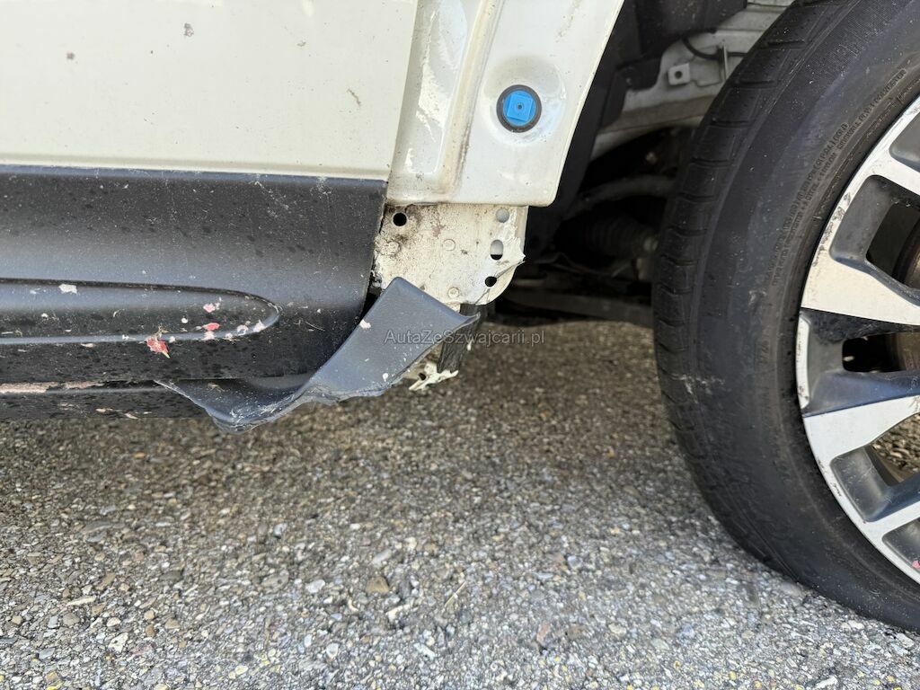 Frontschaden rechts: Vorderachse inkl Lenkung mit Träger beschädigt. Achswelle aus-/abgerissen. Kotflügel mit Stossfänger und Leuchten defekt. Schwellerverkleidung rechts und Schweller leicht beschädigt. Reifen defekt. Frontairbags ausgelöst und sämtliche Gurtstraffer aktiviert.