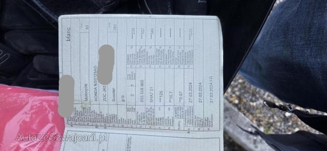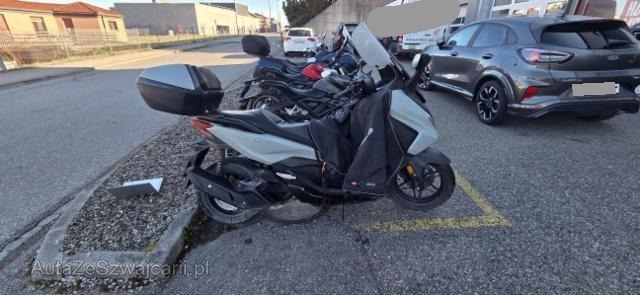 | Condition_and_Equipment | Zustand Fahrzeug ist NICHT fahrbar. Schlüssel Nur ein Schlüssel vorhanden. Auspufftopf Original Auspufftopf wird montiert. Zweirad-Kategorie Roller --- Links Linke Seite beschädigt. Ist auf die linke Seite gefallen. Rechts Rechte Seite beschädigt. Ist auf die rechte Seite gefallen. Front Schutzblech vorne defekt. Gabel Risiko. Glas Windschutzscheibe ist gerissen. Sonstige Schäden Div. Teile sind leicht beschädigt. Weitere Beschädigungen Elektronisches Serviceheft für den Moment ein einziger Schlüssel |