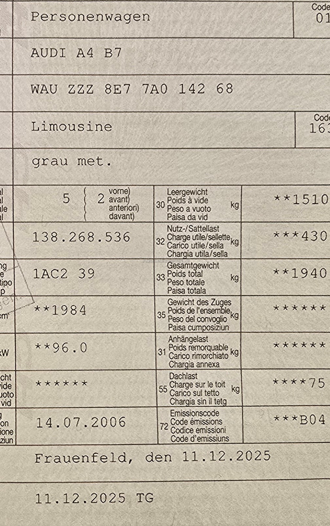 | VIN | WAUXXX |