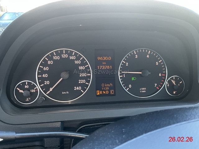 | Sonderausstattung | Accoudoir AV avec vide-poches, Allumage des phares, Applications en aluminium, Assist: Assistant de stationnement actif y c. PARKTRONIC, Boîte automatique à 7 rapports CVT Autotronic y comp. régulateur de vitesse avec Speedtronic, Détecteur de pluie pour essuie-glaces avant, Eclairage aux pieds AV, Eclairage de repérage, Eclairage de sortie dans les portes, Ligne de design et d'équipement, Lumière: Feux de brouillard avant, Lève-vitres électriques avant et arrière y c. ouverture d'été et fermeture confort avant et arrière, MB-Radio Audio 5 RDS avec CD MP3, connexion Aux-in (dans boîts à gants), Pack éclairage et visibilté, Revêtement des jupes latérales en couleur de la carrosserie, Roues à 5 branches en alliage léger 16J, Rétroviseur intérieur réglable jour/nuit automatique, Siège passager réglable en hauteur, Sièges: Sièges AV chauffants, Sièges: Soutiens lombaire pour sièges avant réglables, Tapis revêtus AV et AR, Toit ouvrant coulissant vitré en lamelle électrique, Tous les deux miroirs de courtoisie éclairés, Volant, pommeau du levier de vitesse et du levier de frein à main en cuir |