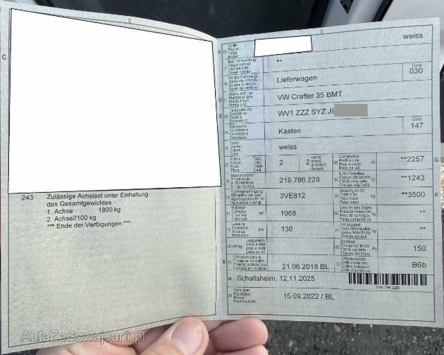 VW Crafter 35 Kaw. 3640 2.0 BI-TDI 177