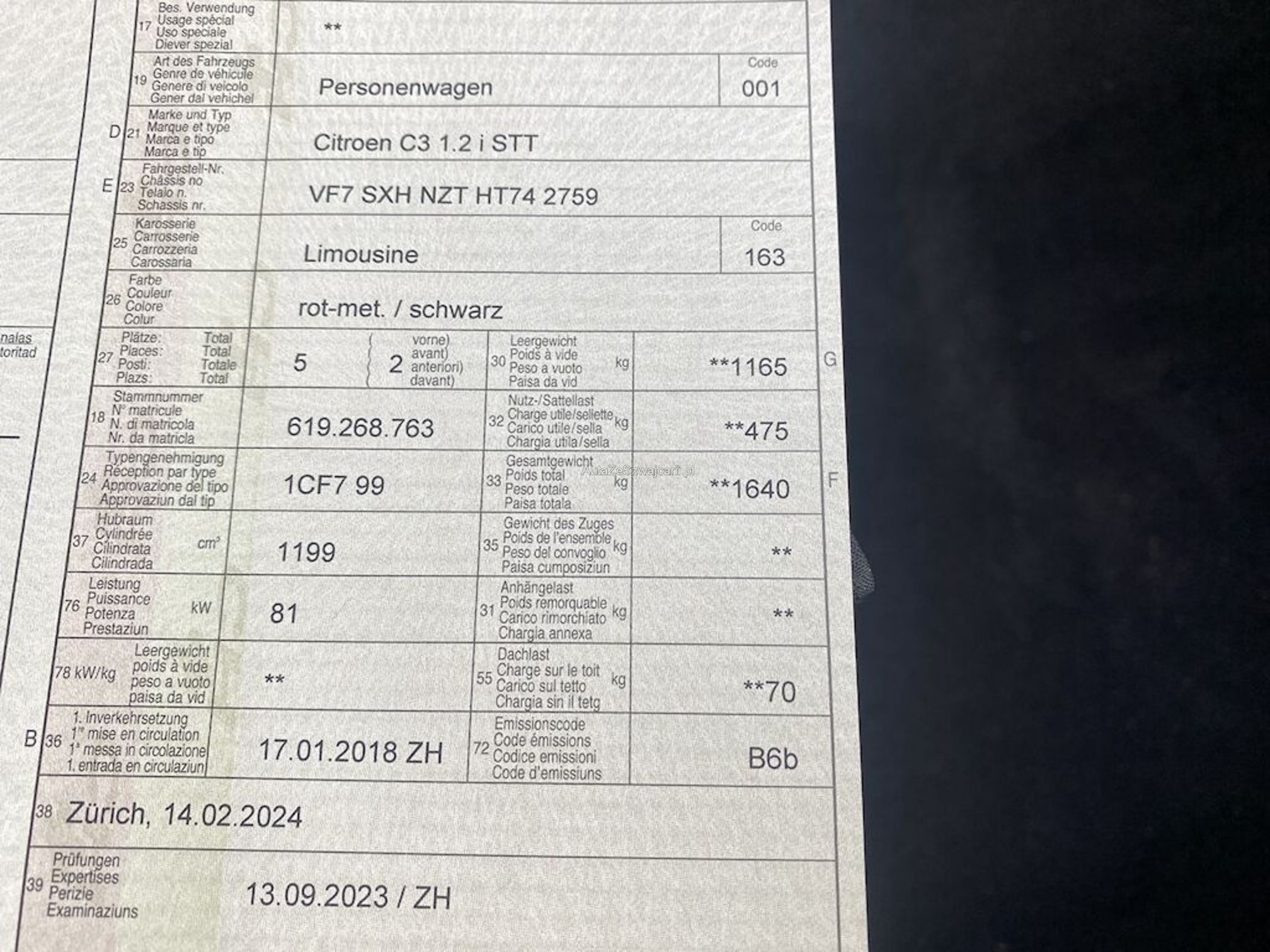 | Kommentar | Bilder vom Kunden gemacht _ Am Fahrzeug wurde kein Werkstatttest gemacht (Für sichtbare oder nicht sichtbare Mängel wird nicht gehaftet). Wir testen & kontrollieren nicht alle Funktionen vom Fahrzeug. Das Risiko liegt somit vollumfänglich beim Käufer. Nachdem der Höchstbietende den Zuschlag erhalten hat, gibt es keine Nachverhandlung, auch wenn nicht deklarierte Mängel zum Vorschein kommen sollten. Ab Platz ohne Garantie, die Gewährleistung ist vollständig ausgeschlossen, damit insbesondere auch Wandelung und Minderung. _ Sonderausstattung gemäss Eurotax ohne Gewähr: _ Dachhimmel, zweifarbig Panorama-Glasdach Reserverad Park Distance Control hinten CITROEN Connect Radio mit Touchscreen, Bluetooth-System, USB und AUX-Anschluss, DAB+ und Mirror Link |