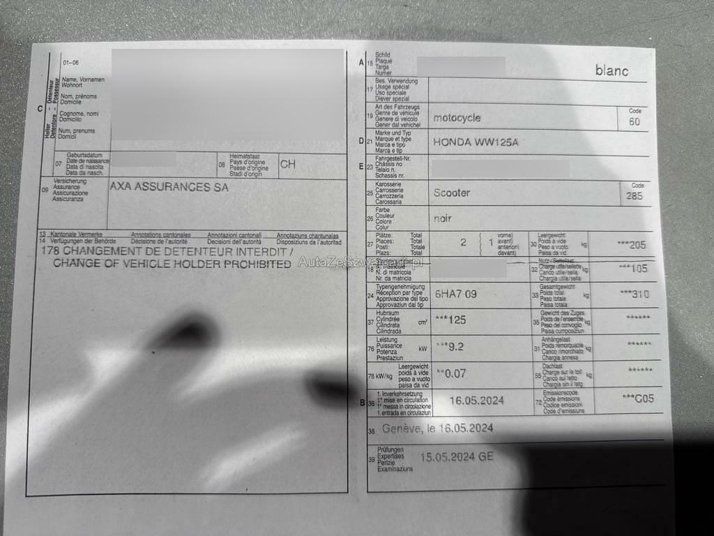 | Fahrzeugausweis | Vorhanden |