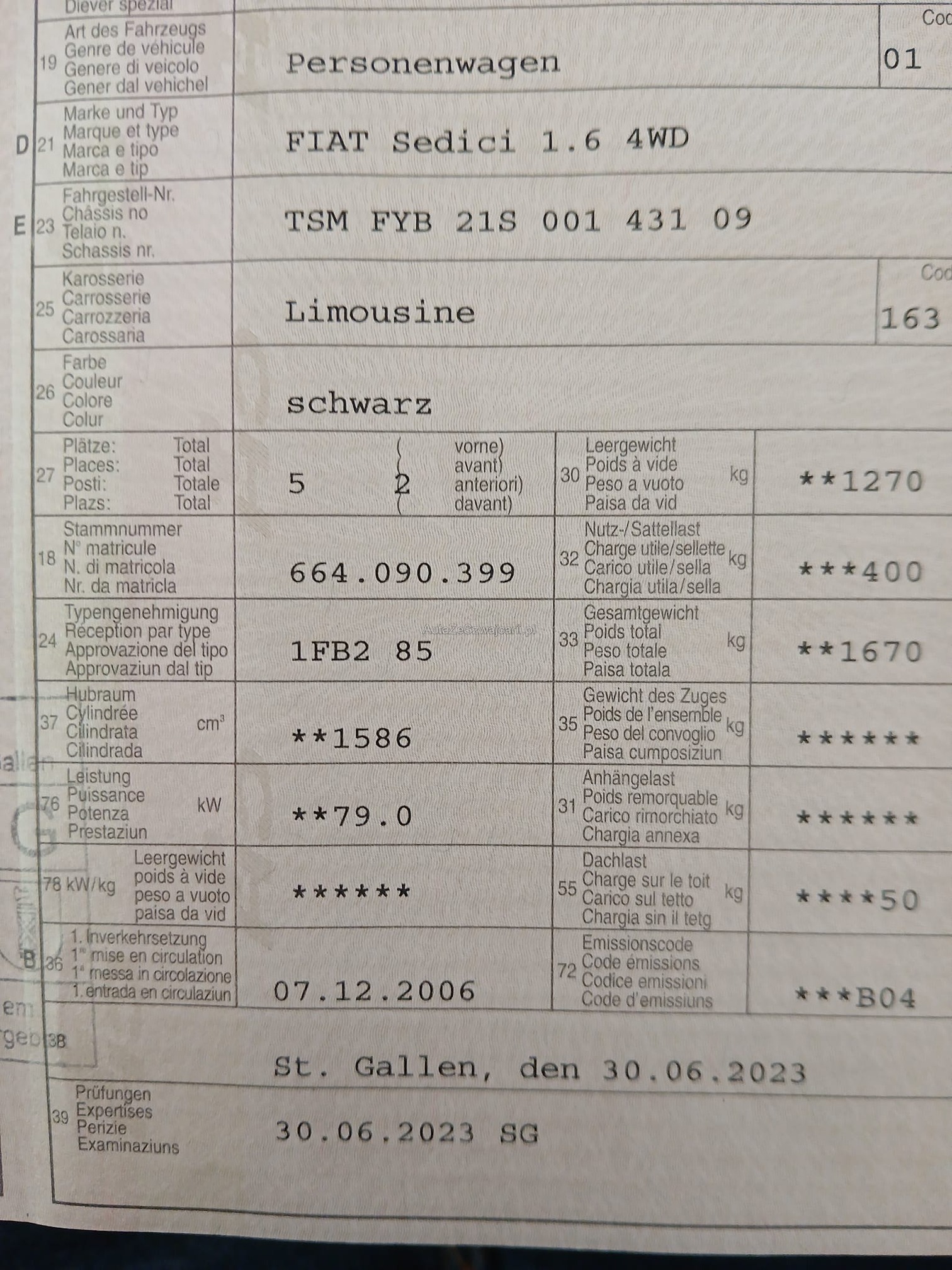 | Kommentar | Technisch nicht geprüft. Fahrzeug läuft ohne Probleme und kann gefahren werden. Warnlampen leuchten keine. 2 Schlüssel vorhanden. Neue Winterreifen montiert. Ist innen und aussen für das Alter in einem guten Zustand. Kleinere Kratzer und Beulen. Fahrersitz auf der Seite hat einen kleinen Riss. Fahrzeug MUSS innert 7 Tage abgeholt werden. ( Banküberweisung) |