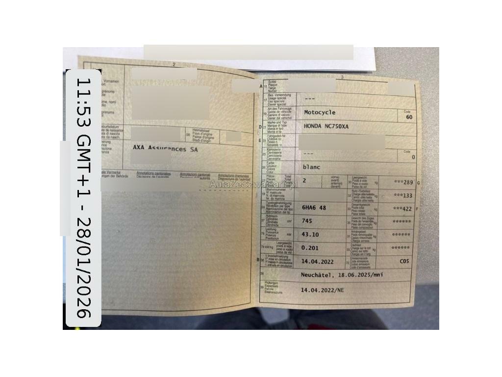 | Fahrzeugausweis | Vorhanden |