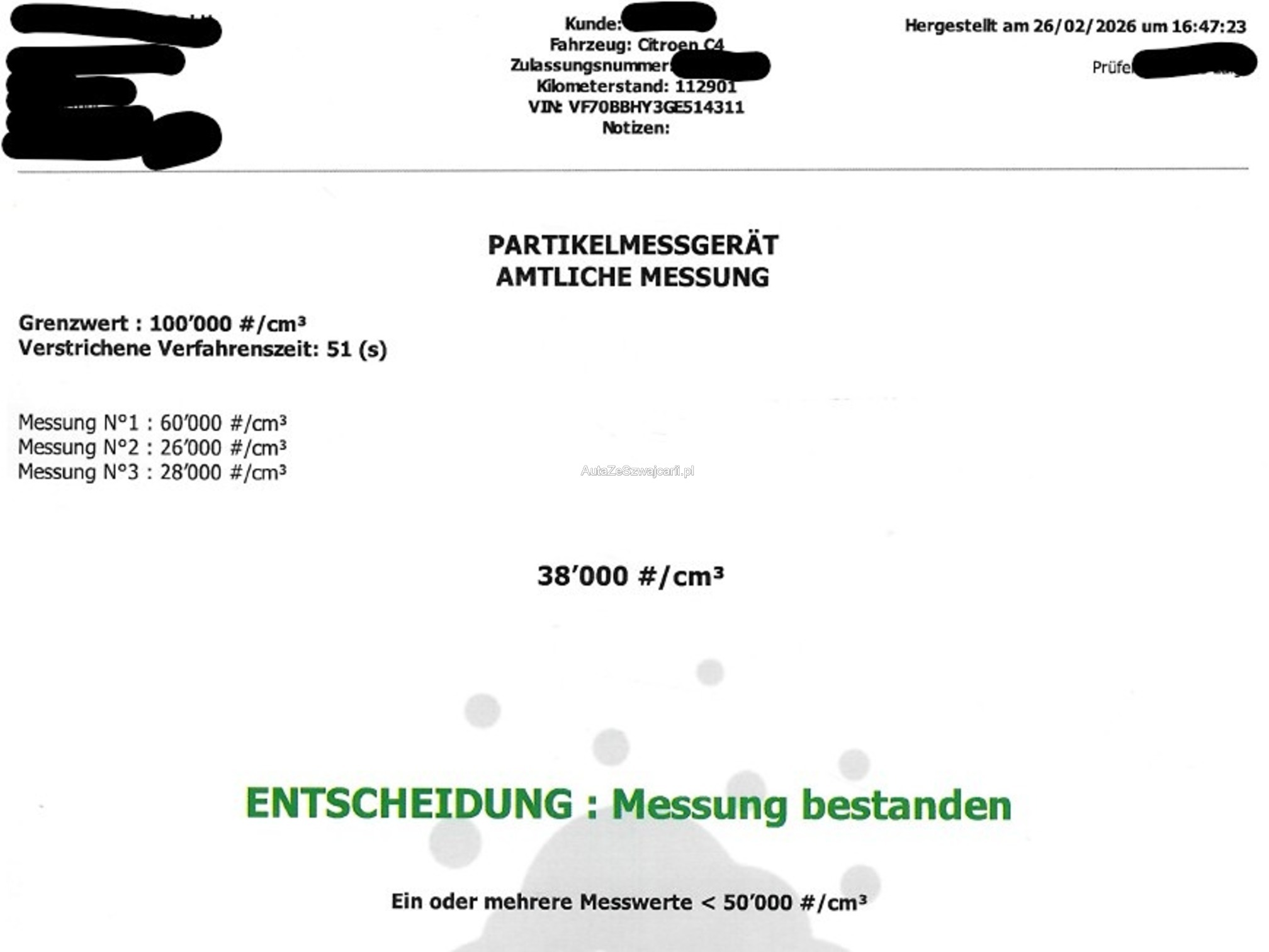 | Kommentar | + hintere Bremsen komplett neu - Bremsbeläge und Trommeln + Partikelfilter-Messung OK + es sind Allwetter-Reifen montiert + Anhängekupplung wegnehmbar - alle Scheibenwischer-Blätter sind zu ersetzen - Querlenker vorne links und vorne rechts rissig - grosser Service inkl. Zahnriemen, Wasserpumpe fällig keine vollständige Prüfung, Aufzählung nicht vollständig ABHOLUNG NACH ZUSCHLAG / VERFÜGBARKEITS-DATUM INNERT 7 TAGEN ERFORDERLICH, DANACH FR. 15.-/TAG STANDPLATZ-GEBÜHREN BARZAHLUNG BEI ABHOLUNG / MONTAG-FREITAG 08:00-12:00 UND 13:30-17:00 IM KUNDENAUFTRAG ZU VERKAUFEN, KEINE MWST VORSTEUER AUSWEISBAR. |