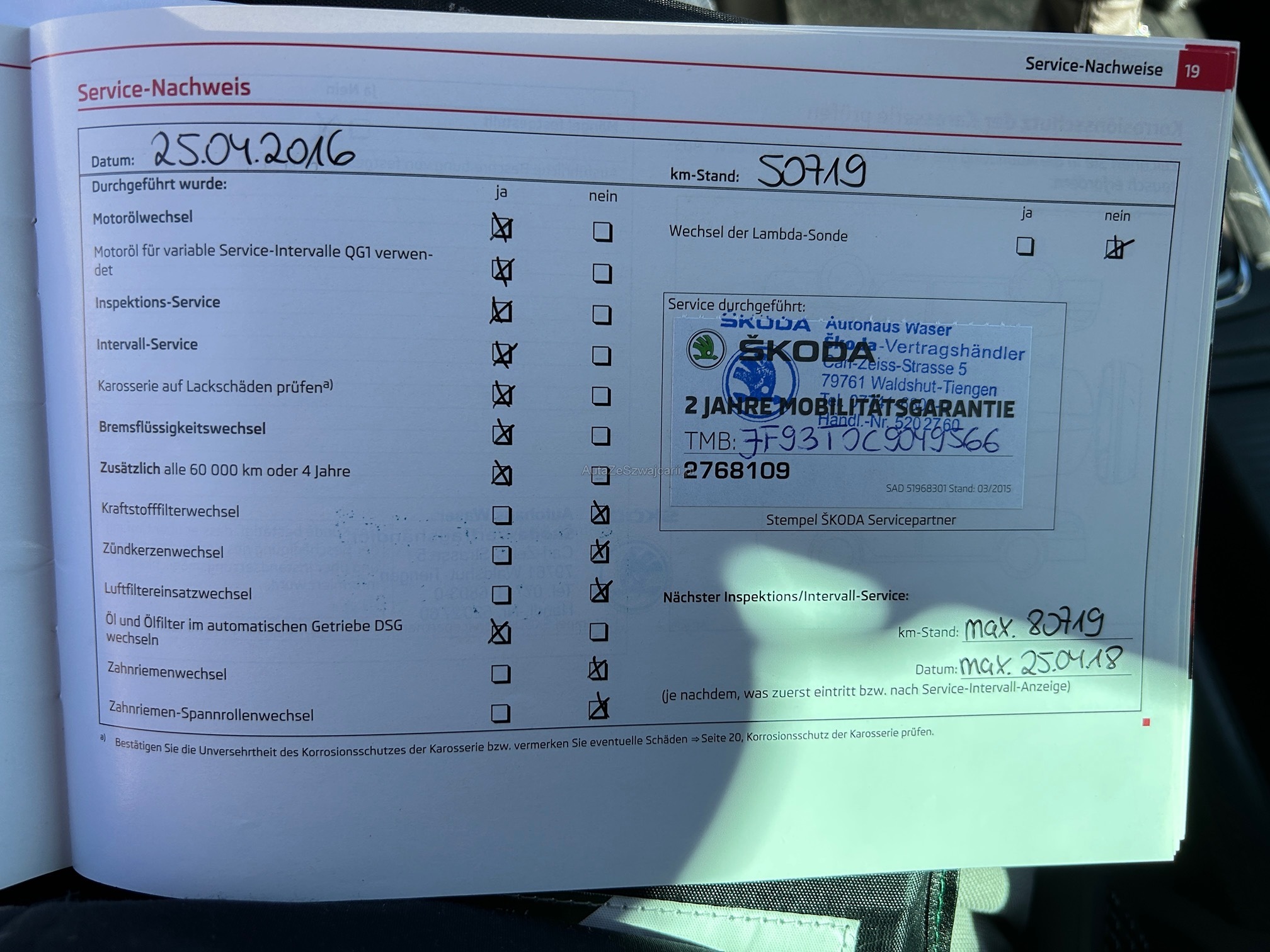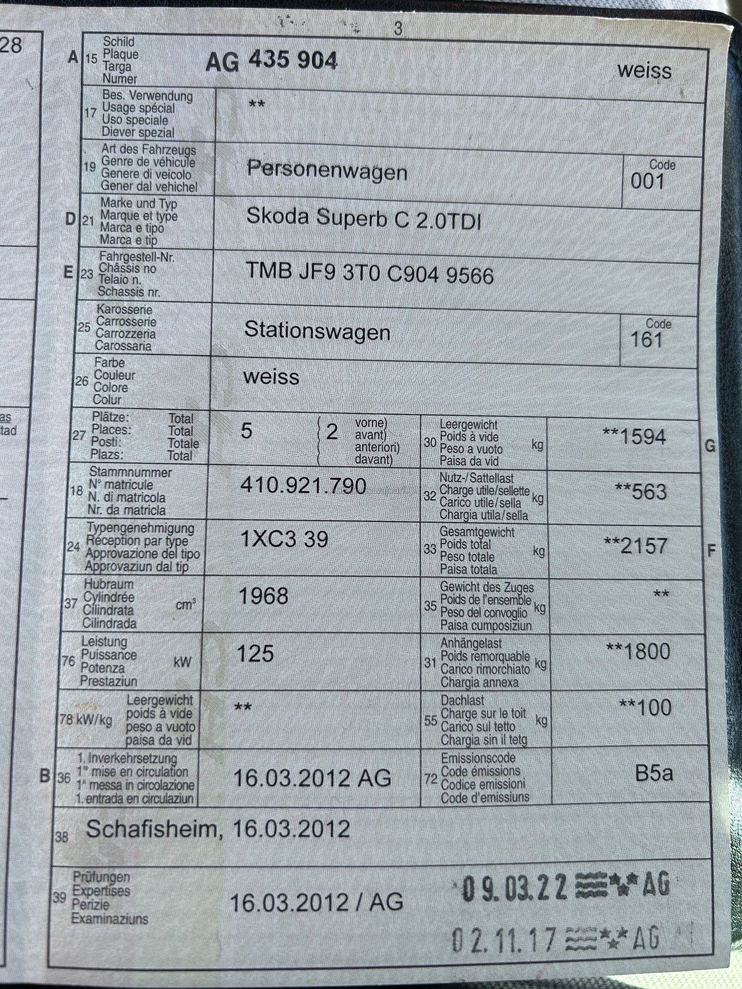 | Kommentar | Es wurde kein Werkstatt-Test durchgeführt. Fahrzeug sieht gepflegt aus. |