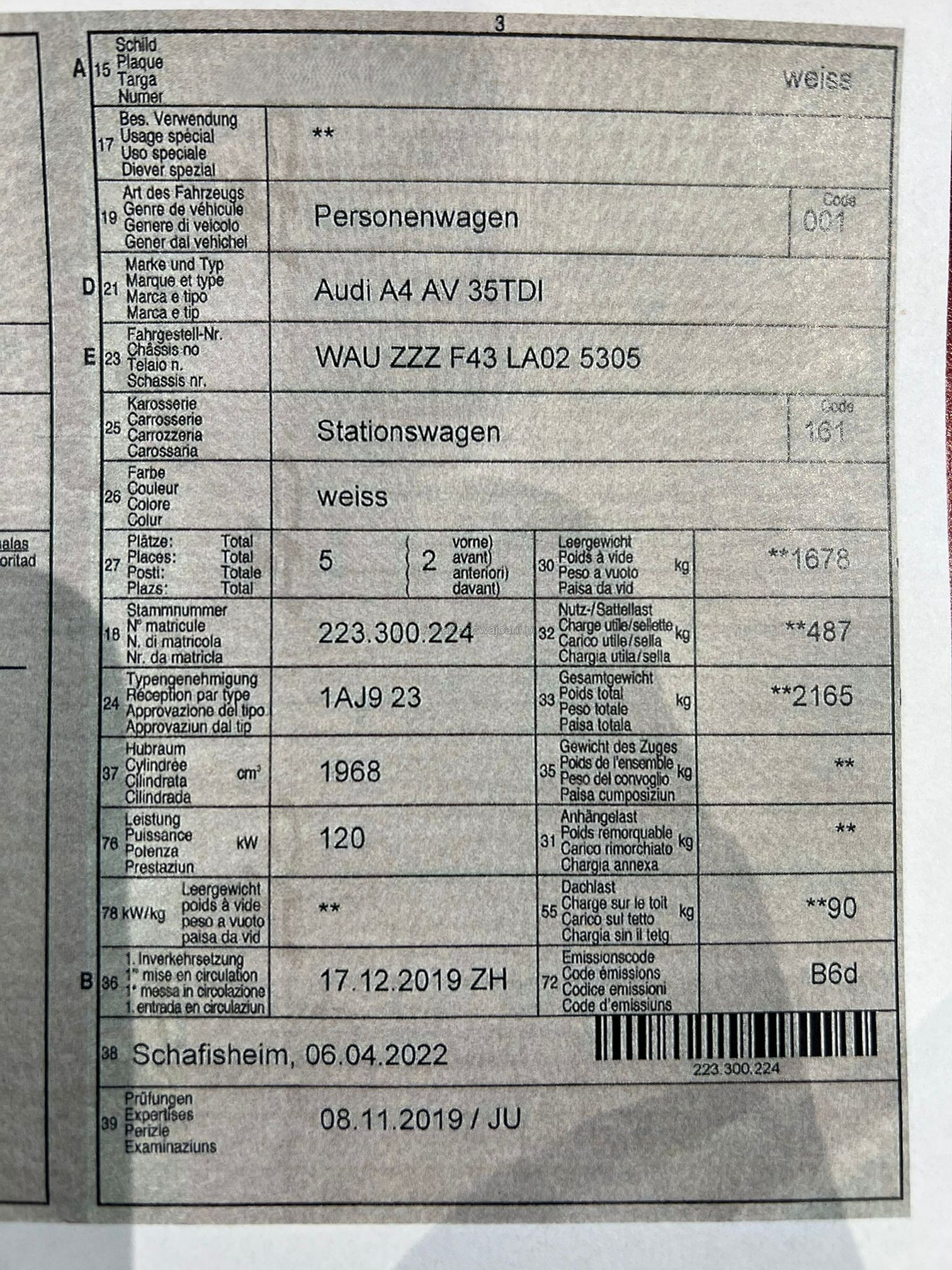 | Letzte Inspektion | 2019-11-01 |